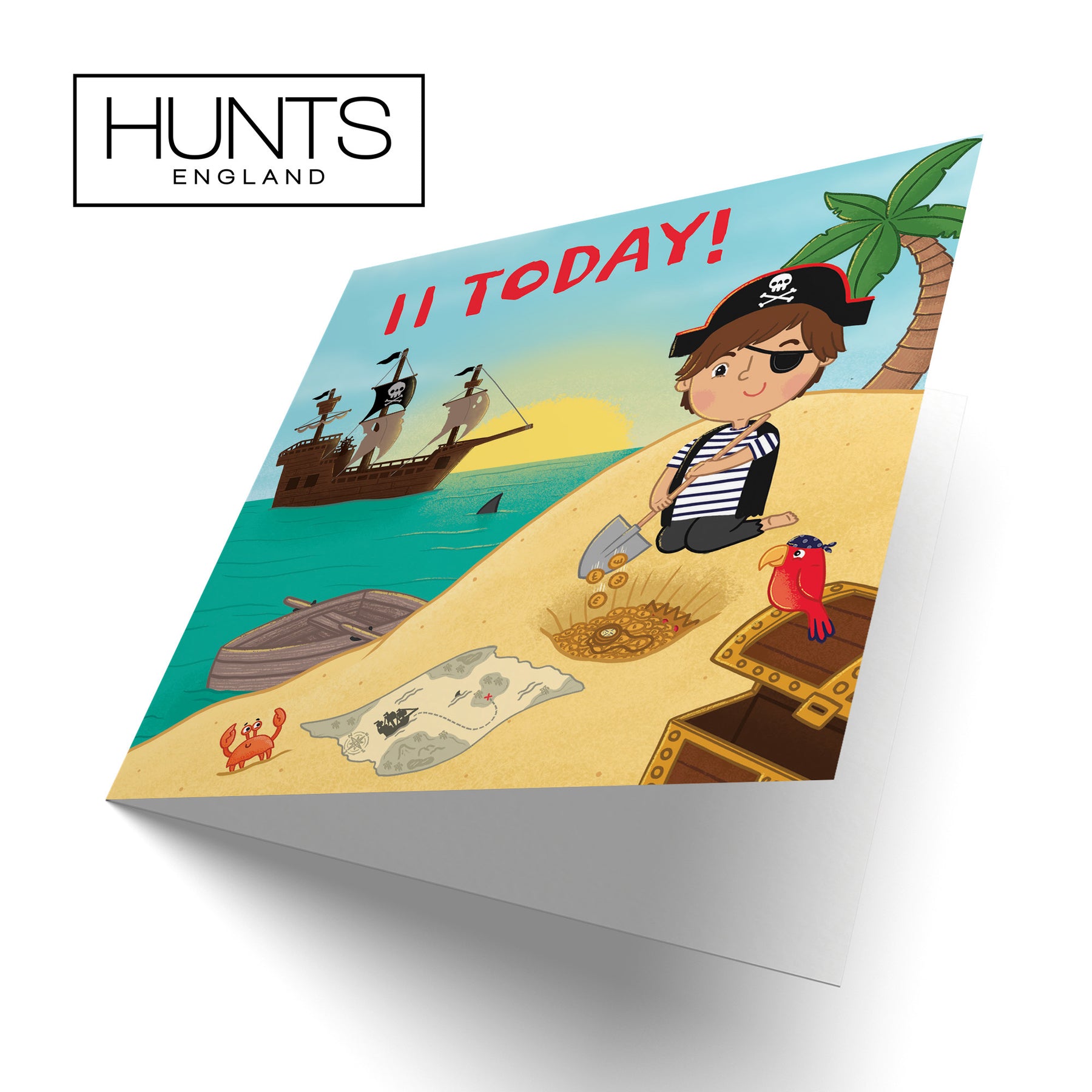 Hunts England - Boys Pirate 11th Birthday Card - Happy Birthday - 11 Today! - Treasure Map - Age 11 - Imagination Collection.