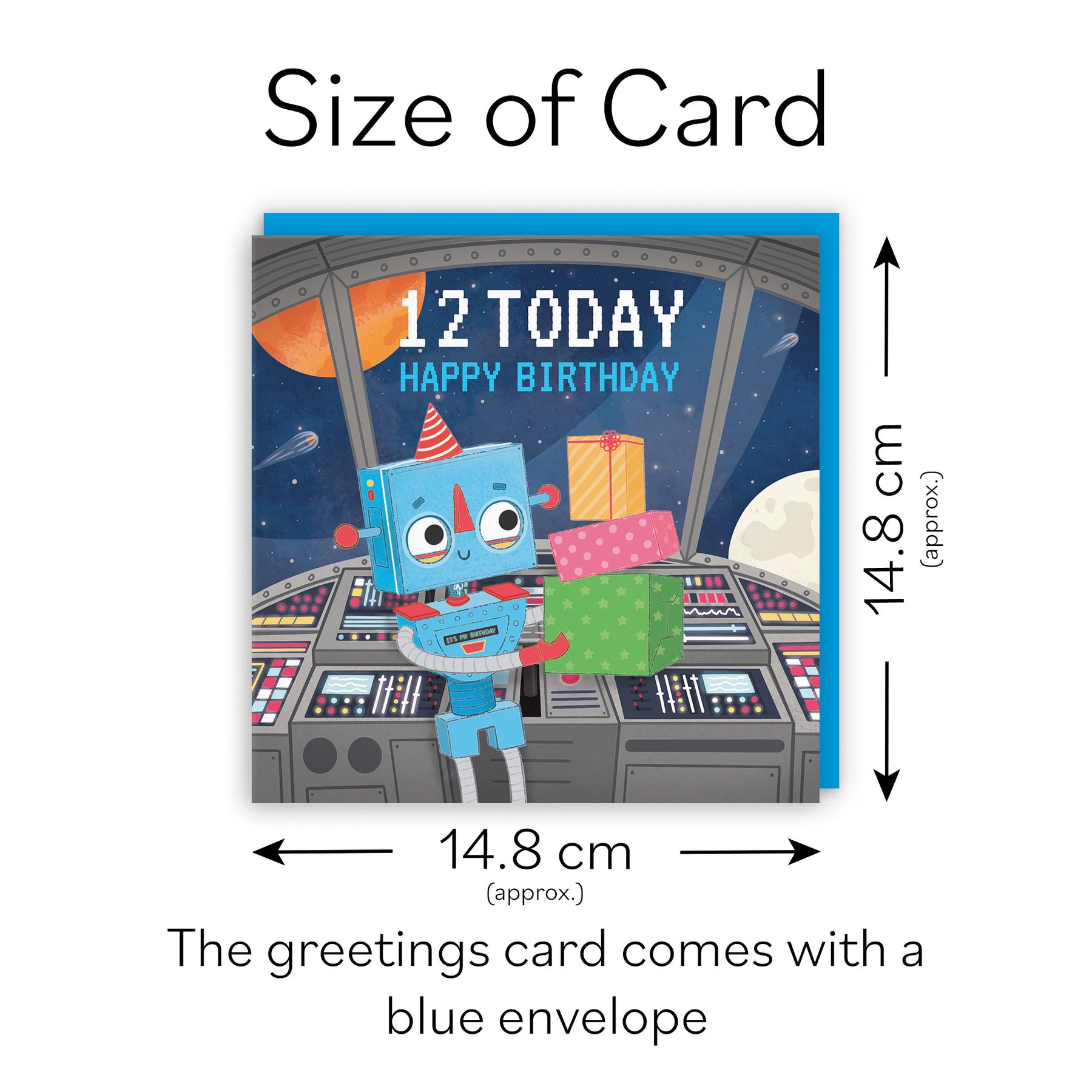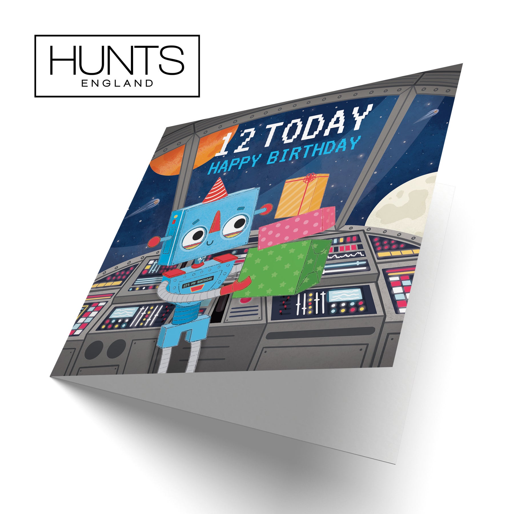 Hunts England - Space Robot Boys 12th Birthday Card - 12 Today - Happy Birthday - Robot On A Spaceship - Children's / Kids Card - Imagination Collection.