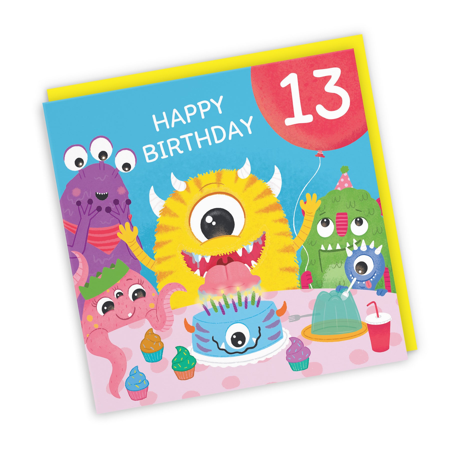 Hunts England - 13th Birthday Boys / Girls Monsters Party Card - Happy Birthday - 13 - Age 13 - Imagination Collection.