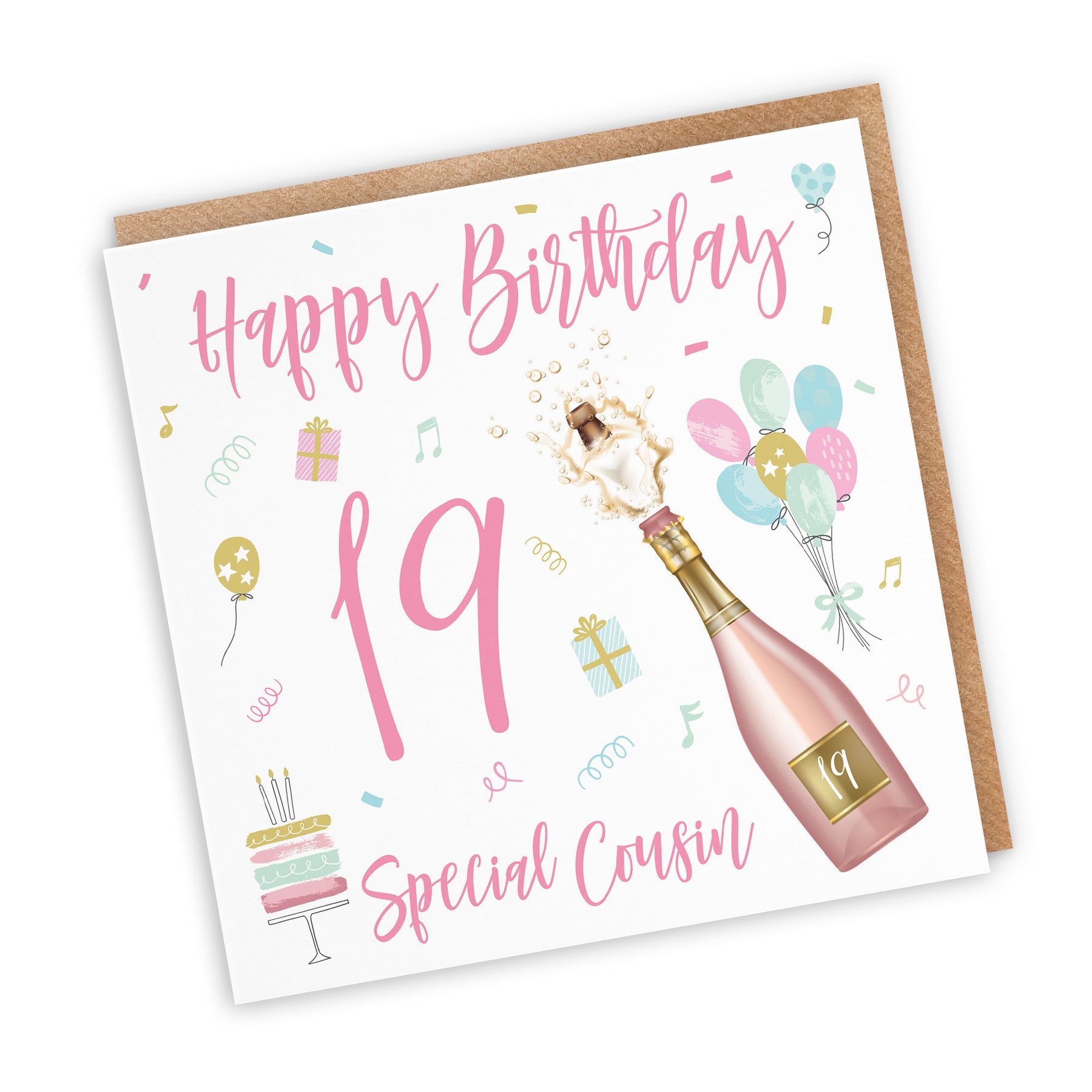 Hunts England - Cousin 19th Female Birthday Card - For Her - Happy Birthday - Special Cousin - 19 - Champagne Collection.