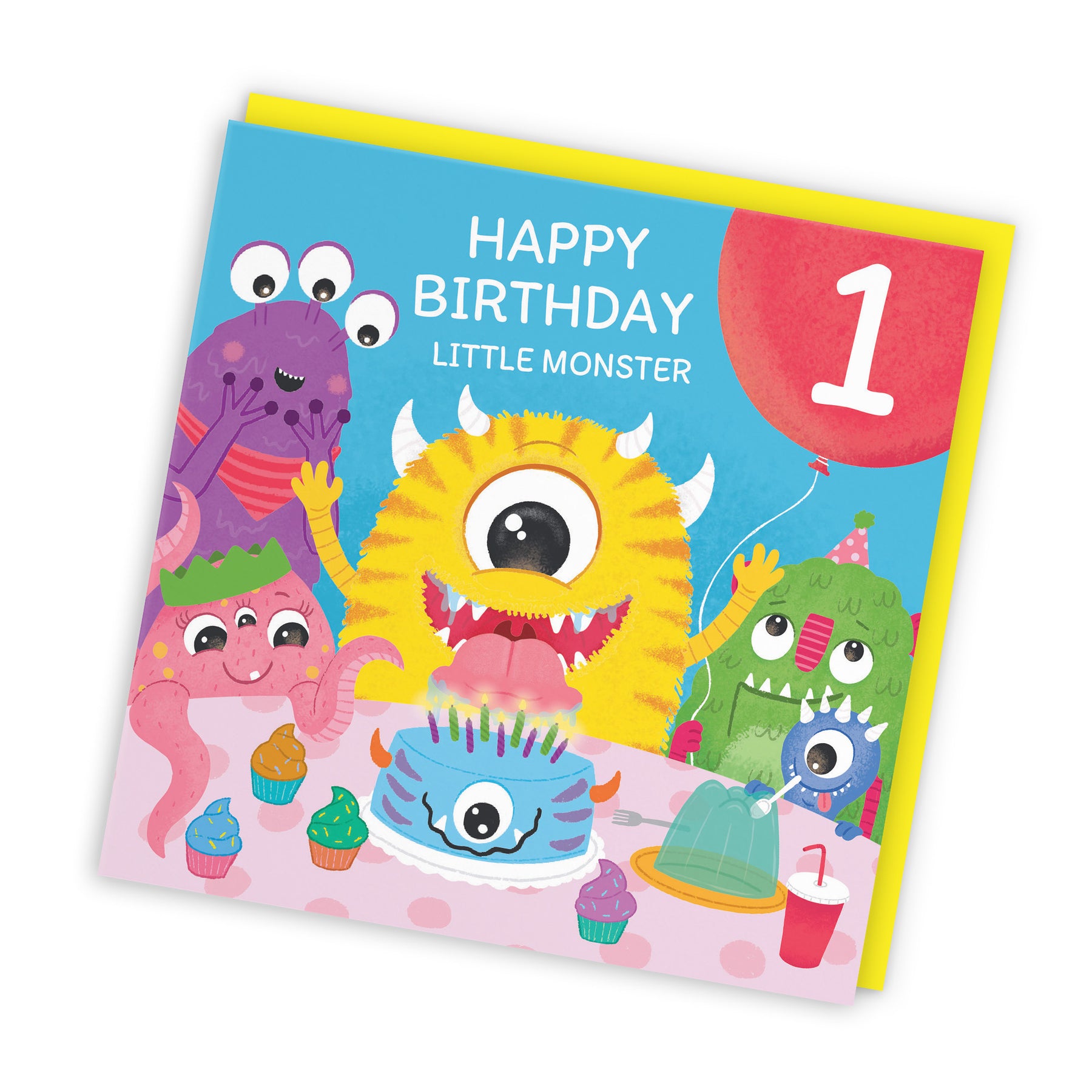 Hunts England - 1st Birthday Boys / Girls Monsters Party Card - Happy Birthday - Little Monster - 1 - Age 1 - Imagination Collection.