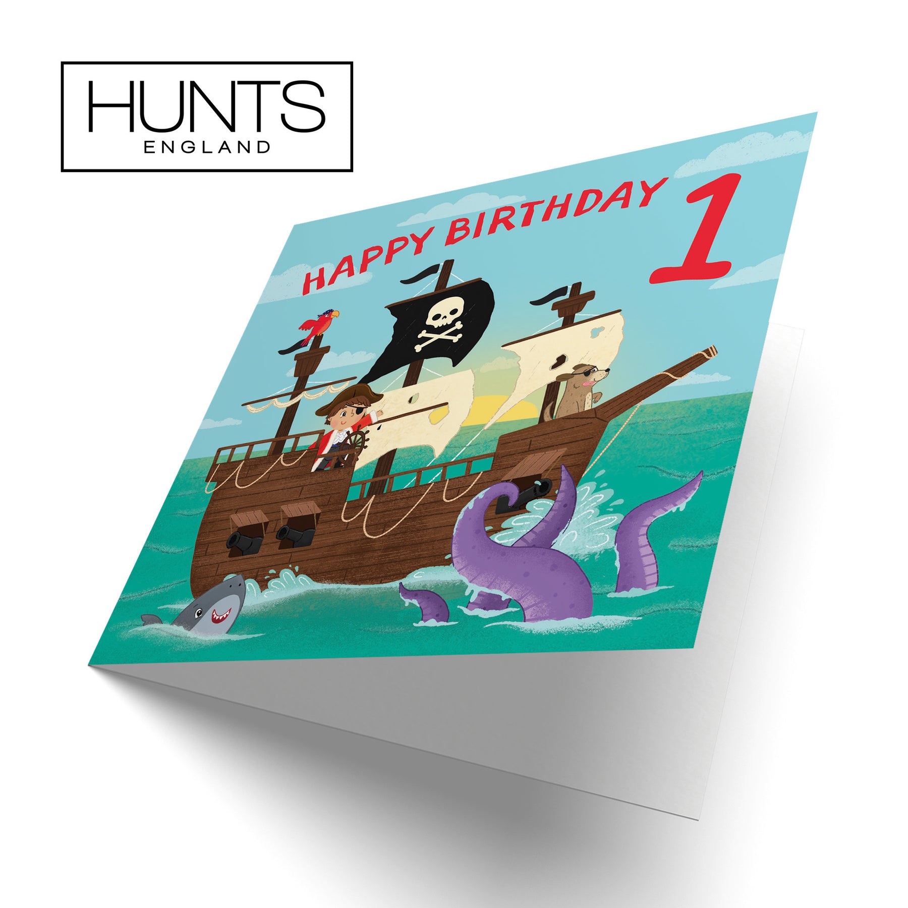 Hunts England - Boys Pirate Ship 1st Birthday Card - Happy Birthday - 1 - Pirate Ship On High Seas - Age 1 - Imagination Collection.