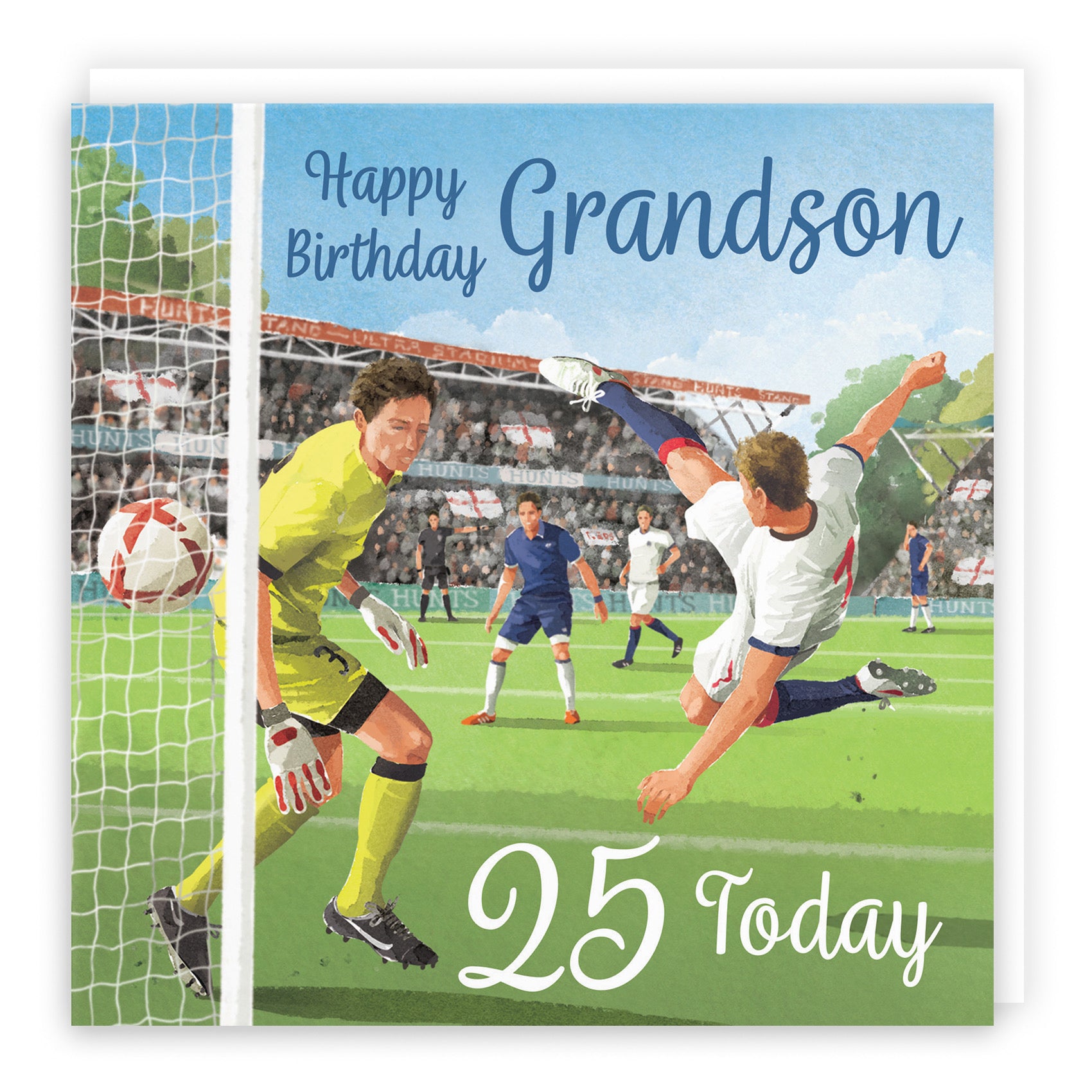 Hunts England - 25th Grandson Football Birthday Card - Milo's Gallery - Age 25 Footy Fun Birthday Card For Grandson - Birthday Card For 25 Year Old Footie Fan - Age Twenty Five.