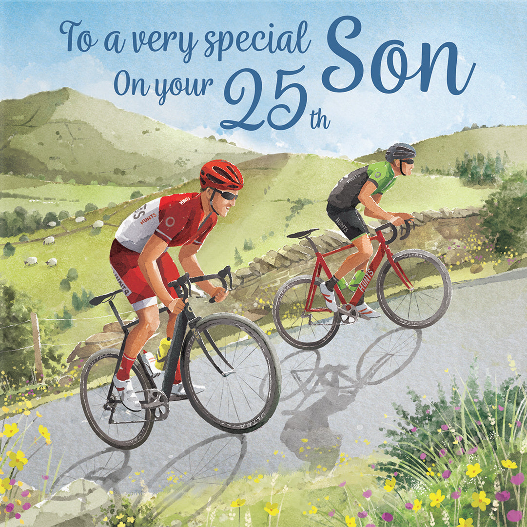 Hunts England - 25th Son Road Cycling Birthday Card - Hill Climb - Road Bikes - Milo's Gallery - Age 25 Birthday Card For Son - Men's Birthday Card - Age Twenty Five - Son Birthday.