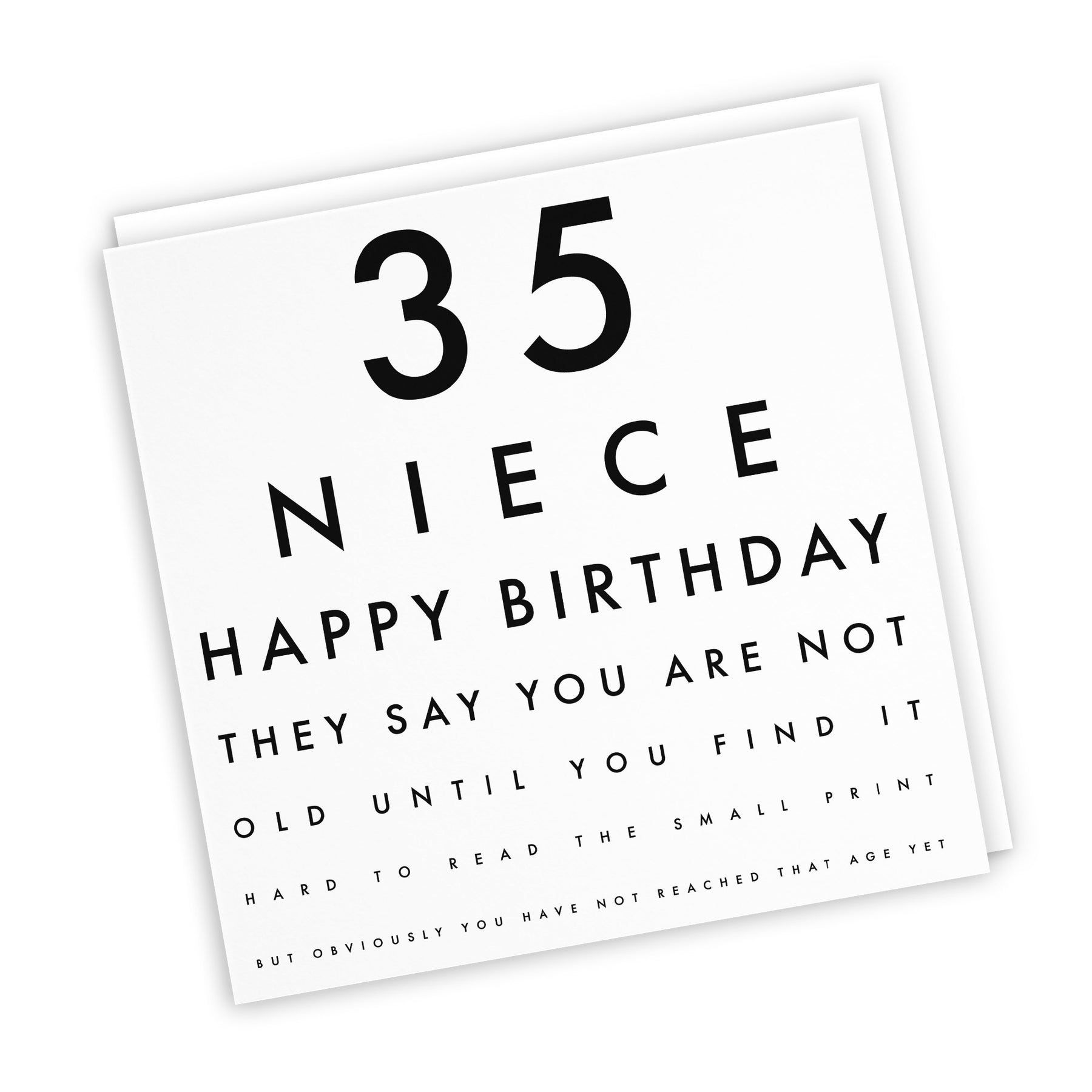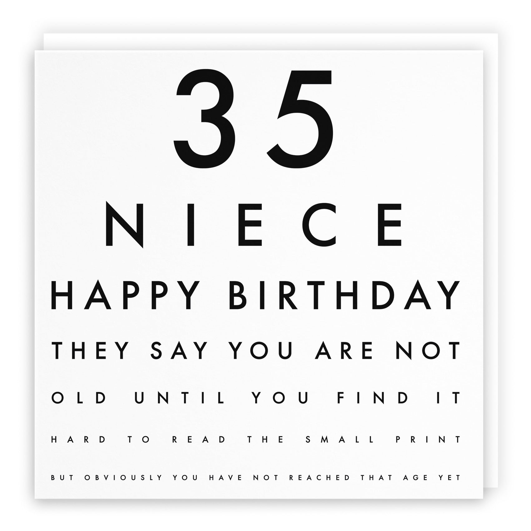 Hunts England - Niece 35th Humorous Birthday Card - 35 Niece - Happy Birthday - They Say You Are Not Old Until You Find It Hard To Read The Small Print... - Letters Collection.