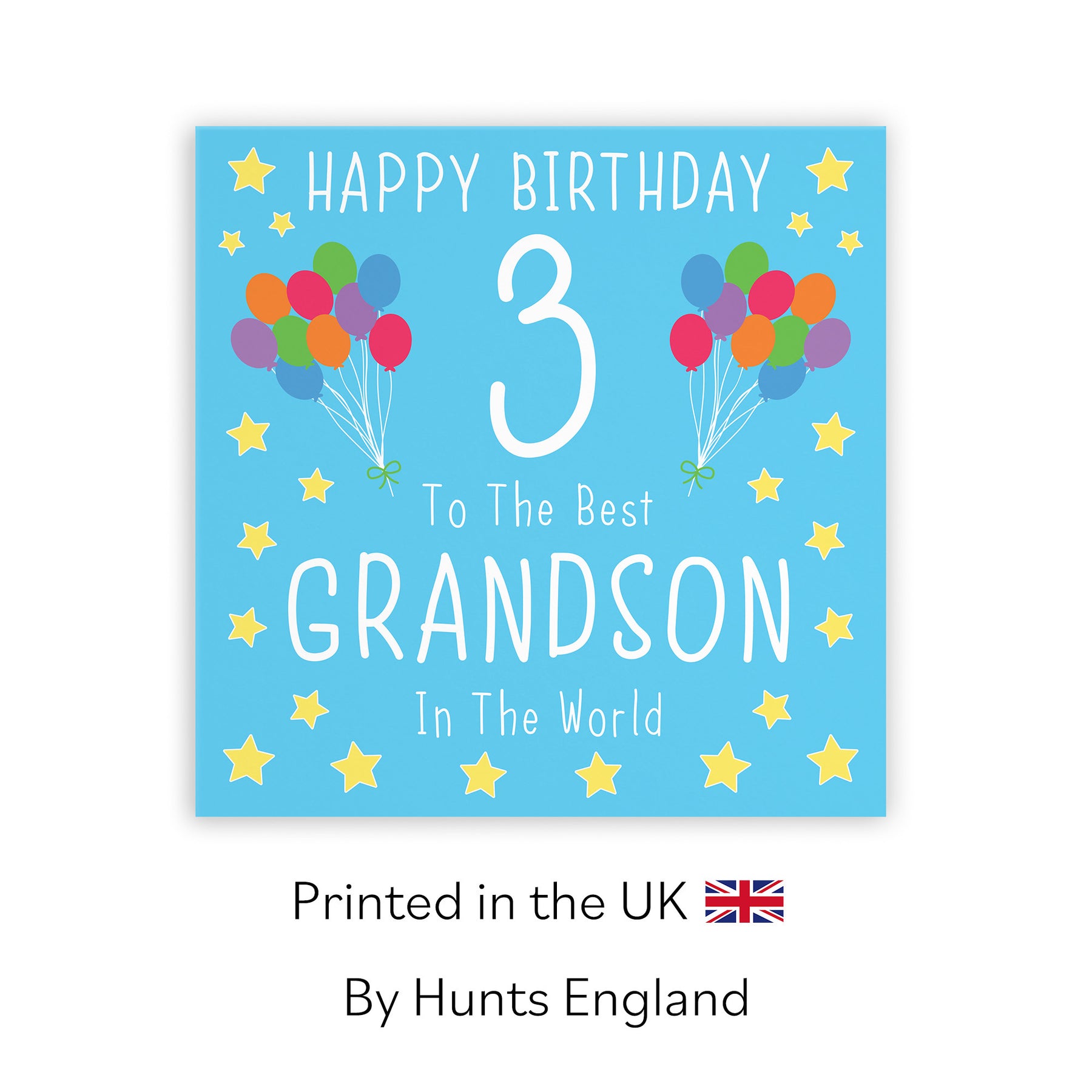 Hunts England - Grandson 3rd Birthday Card - Happy Birthday - 3 - To The Best Grandson In The World - Iconic Collection.