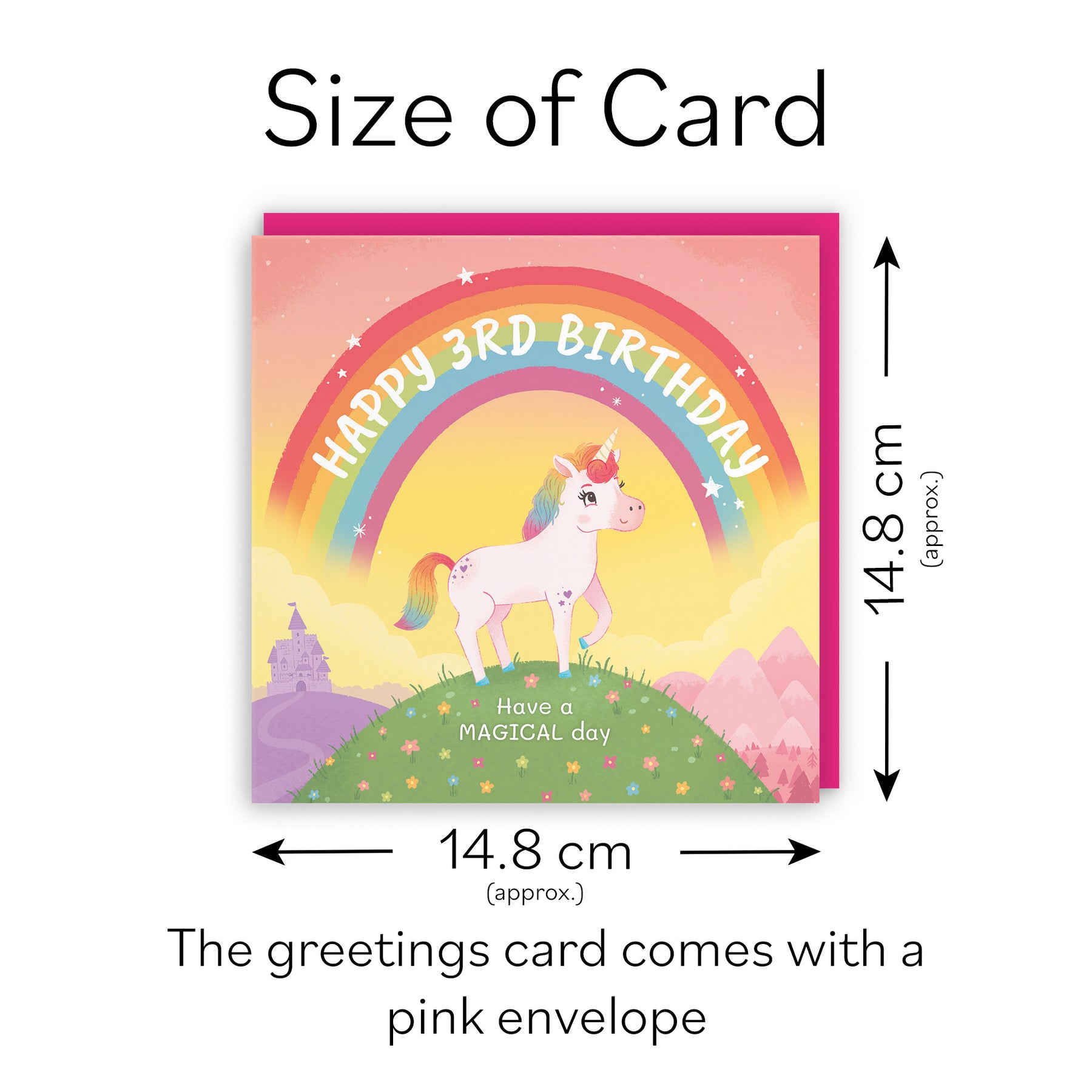 Hunts England - Unicorn Girls 3rd Birthday Card - Happy 3rd Birthday - Have A Magical Day - Age 3 - Imagination Collection.