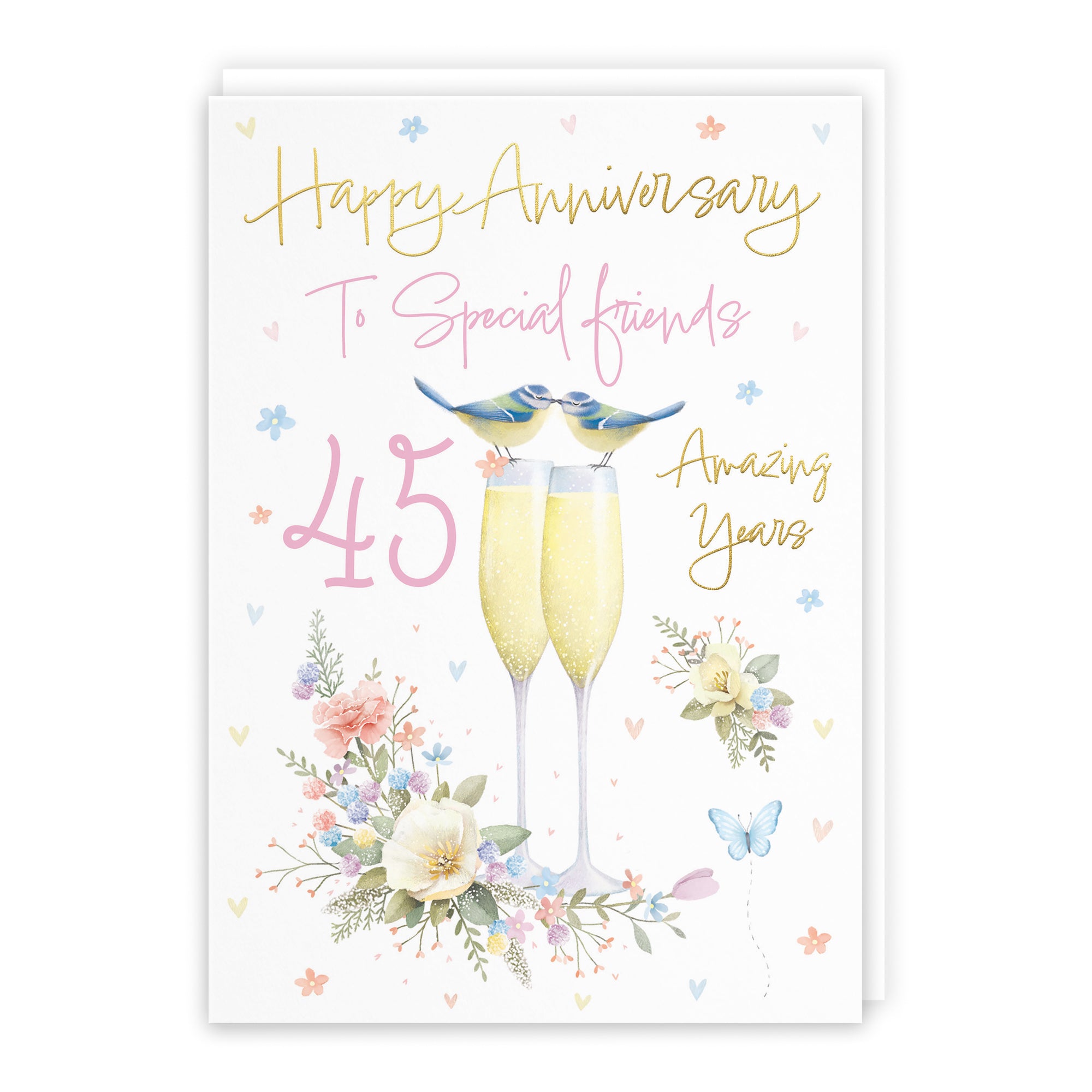 Hunts England - Special Friends 45th Anniversary Card - A5 Size - Champagne Flutes - Gold Foil - 45th Anniversary Card For Special Friends - 45 Years - Milo's Gallery.