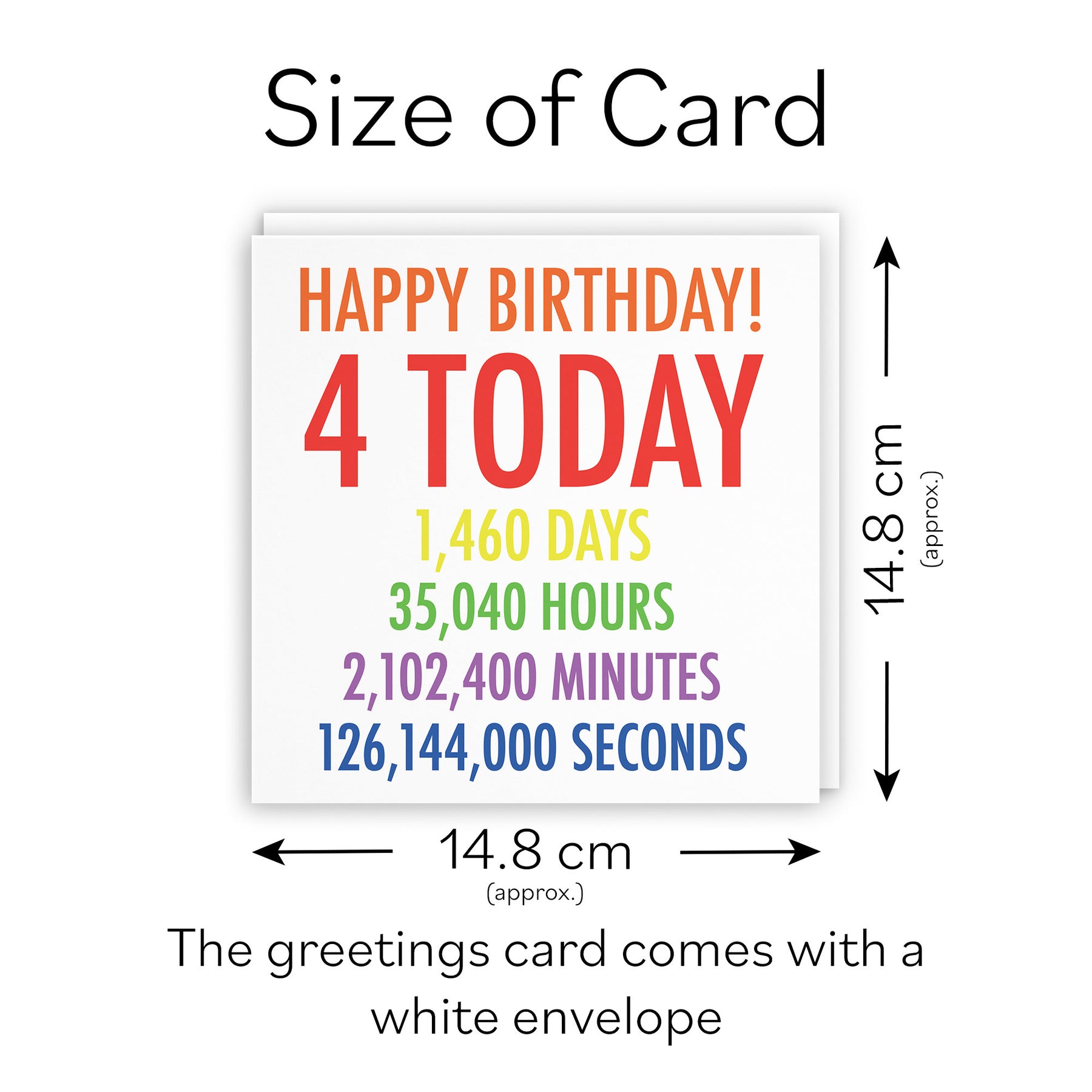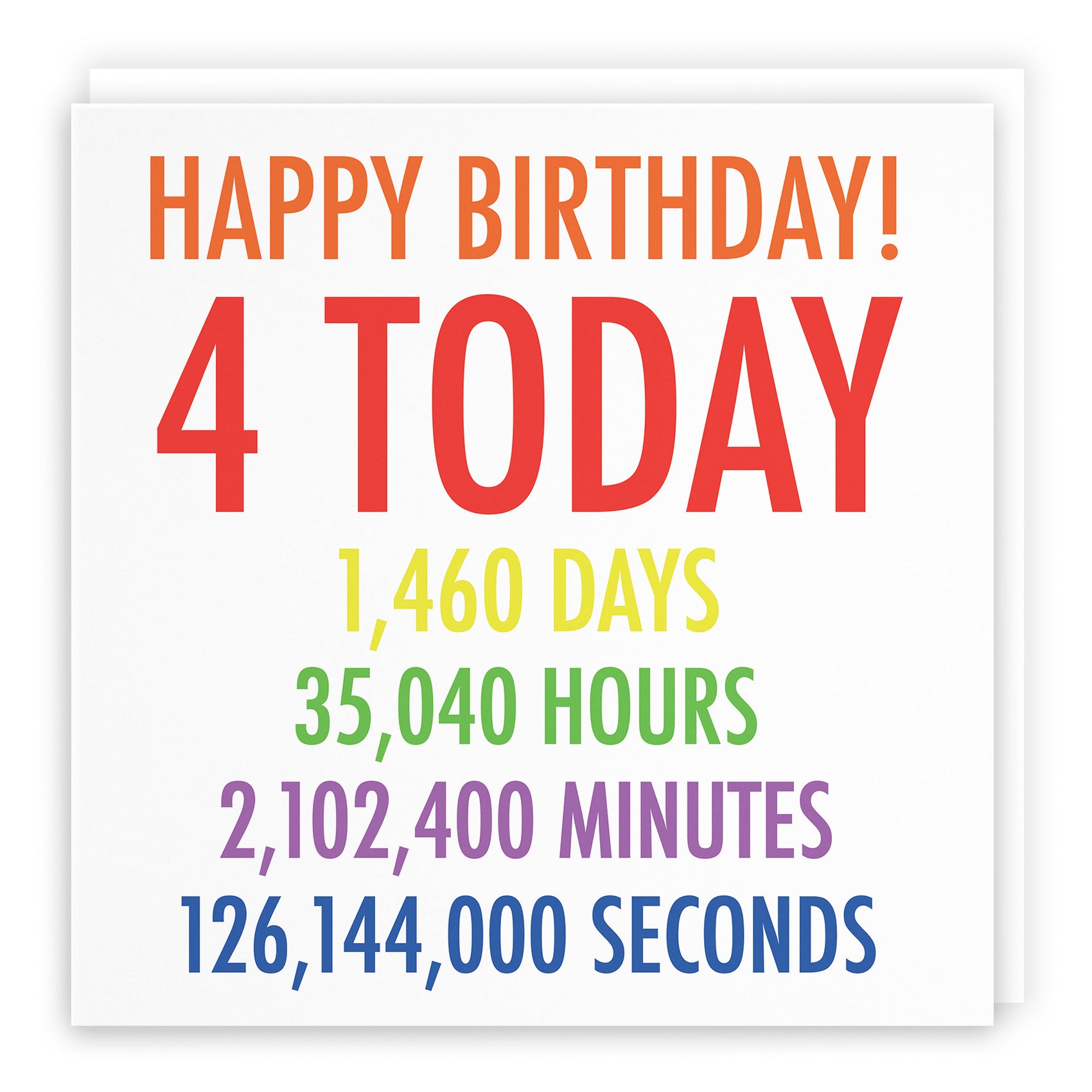 Hunts England - Funny 4th Birthday Card - Colourful - Happy Birthday - 4 Today - Numbers Collection - For Son, Daughter, Brother, Sister, Friend, Cousin, etc..