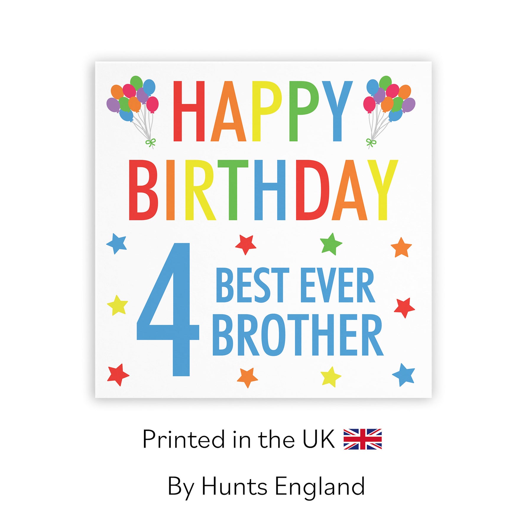 Hunts England - Brother 4th Birthday Card - 'Happy Birthday' - 'Best Ever Brother' - Colourful Collection.