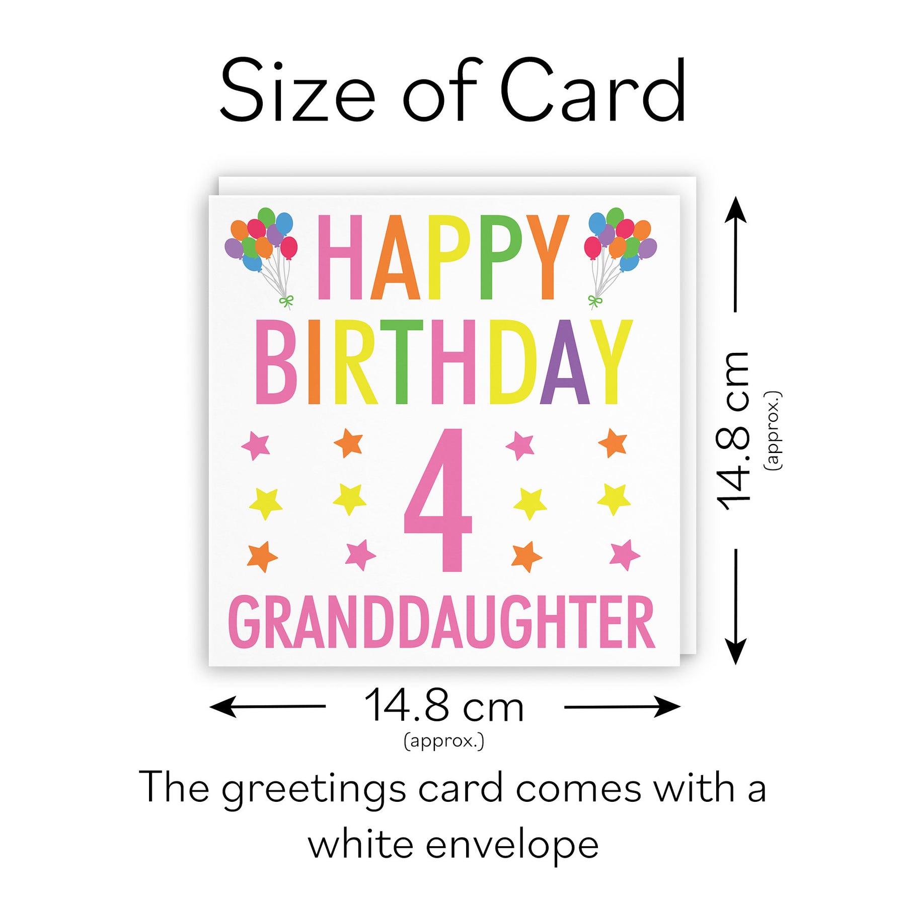 Hunts England - Granddaughter 4th Birthday Card - 'Happy Birthday' - '4 Granddaughter' - Colourful Collection.