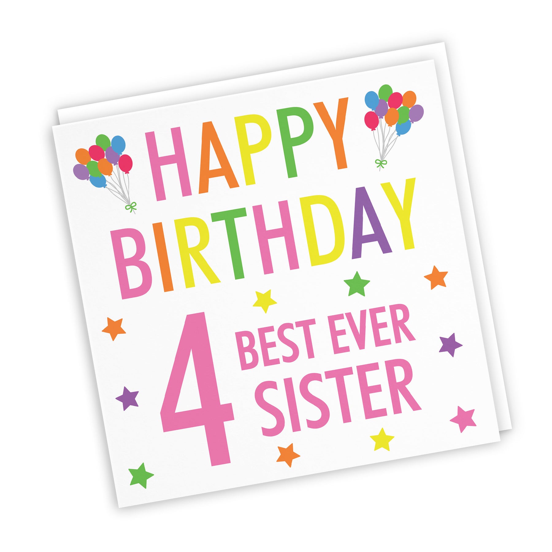 Hunts England - Sister 4th Birthday Card - 'Happy Birthday' - 'Best Ever Sister' - Colourful Collection.