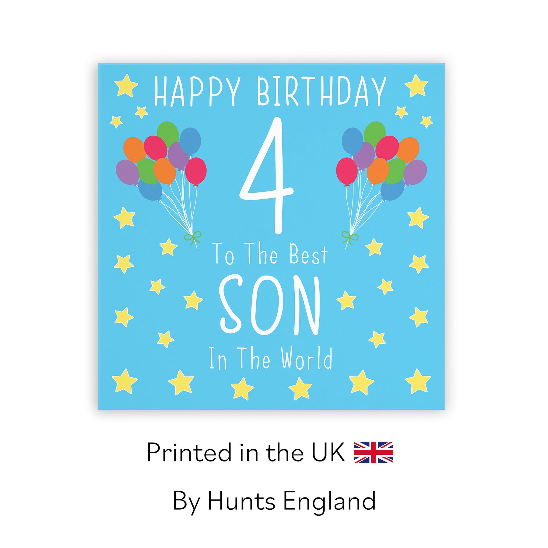 Hunts England - Son 4th Birthday Card - Happy Birthday - 4 - To The Best Son In The World - Iconic Collection.