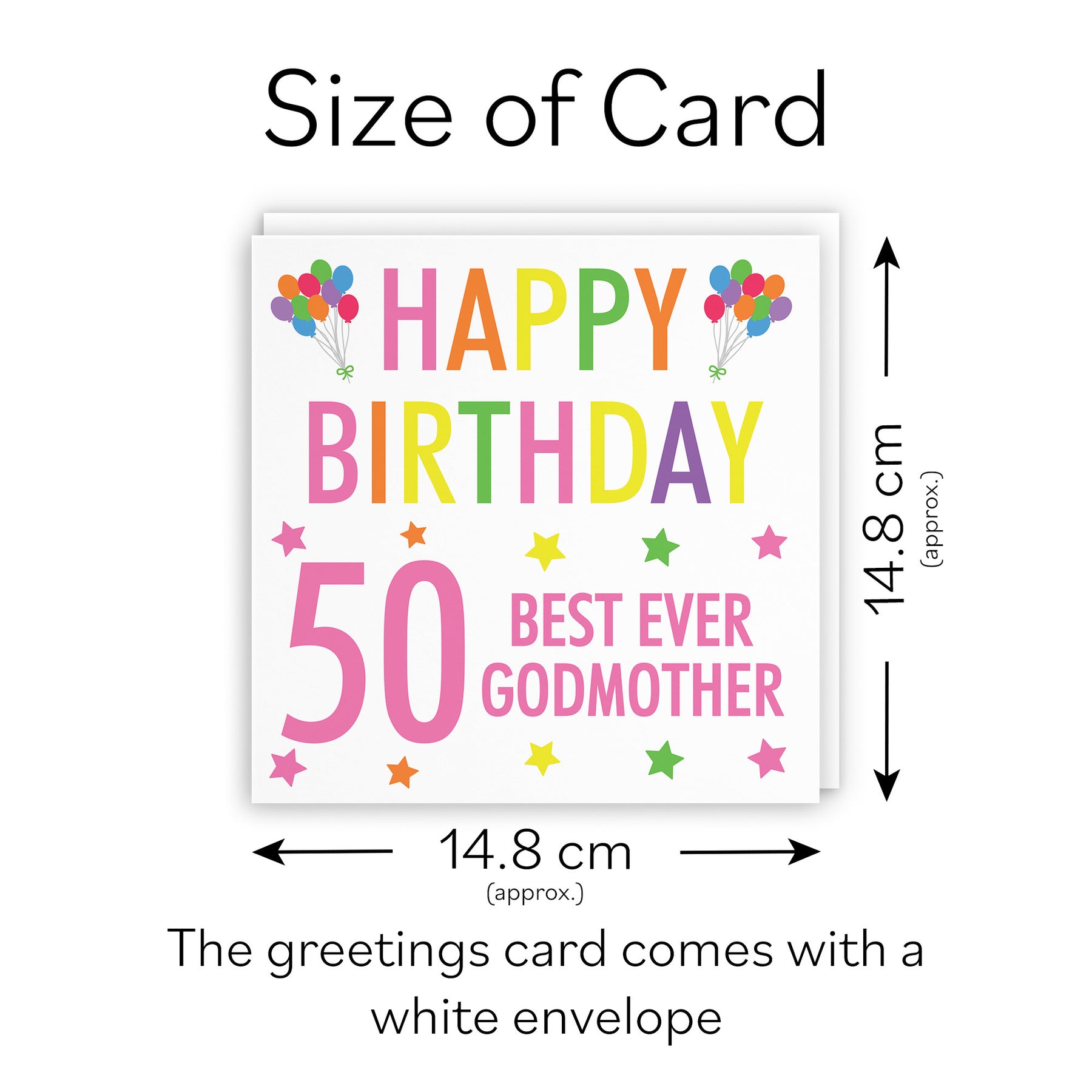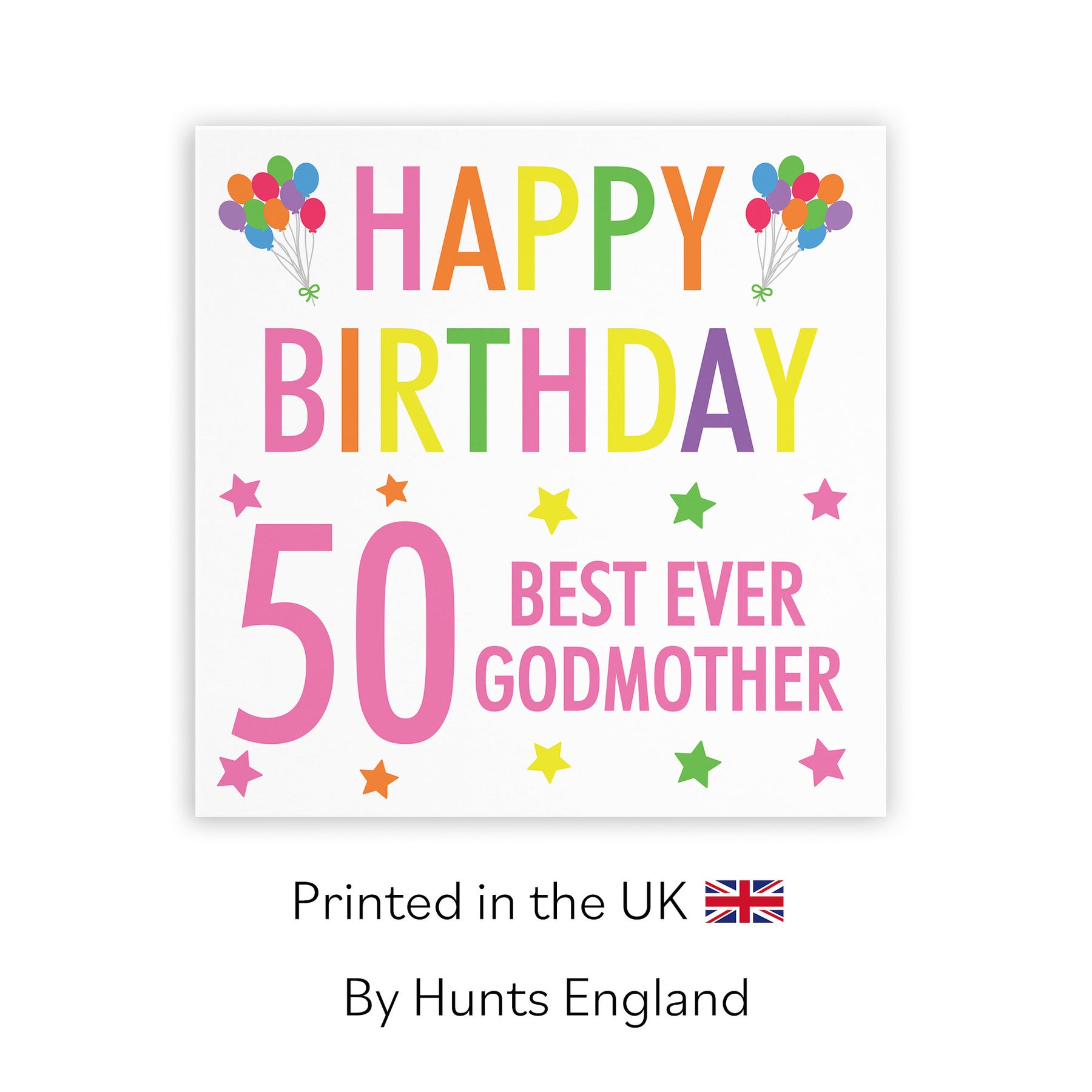 Hunts England - Godmother 50th Birthday Card - Happy Birthday - 50 - Best Ever Godmother - Colourful Collection.