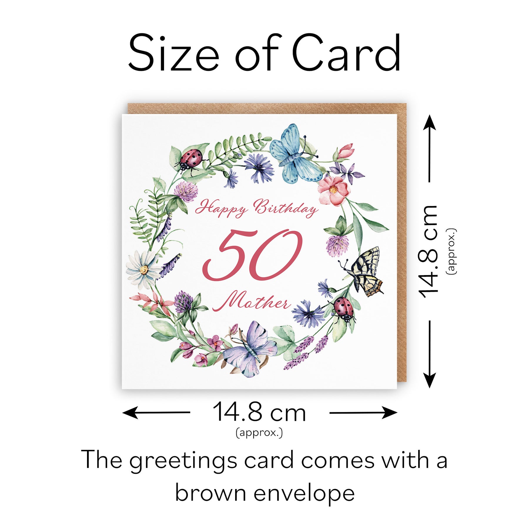 Hunts England - Mother 50th Birthday Card - Happy Birthday - 50 - Mother - Meadow Collection.