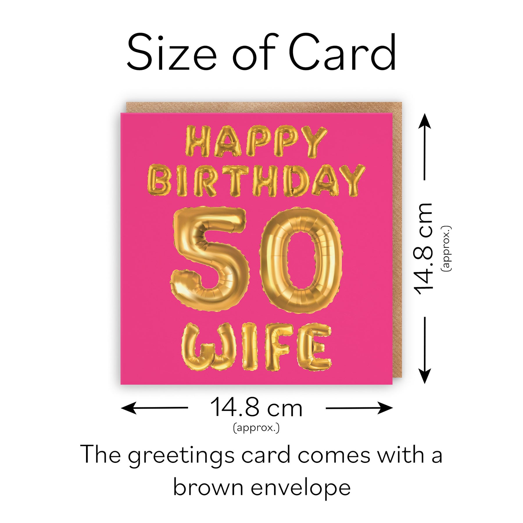 Hunts England - Wife 50th Birthday Card - Happy Birthday - 50 - Wife - Balloon Collection.
