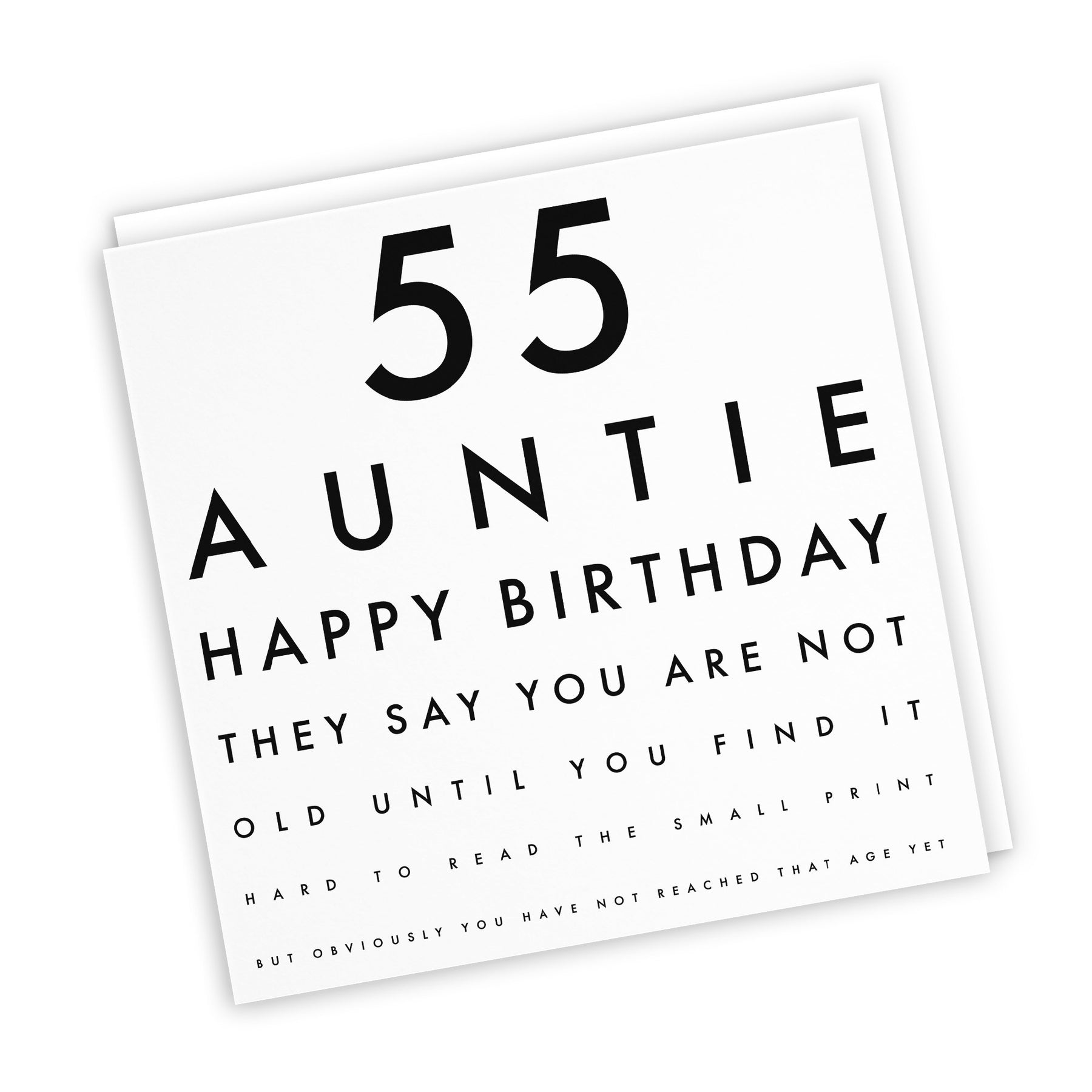 Hunts England - Auntie 55th Humorous Birthday Card - 55 Auntie - Happy Birthday - They Say You Are Not Old Until You Find It Hard To Read The Small Print... - Letters Collection.