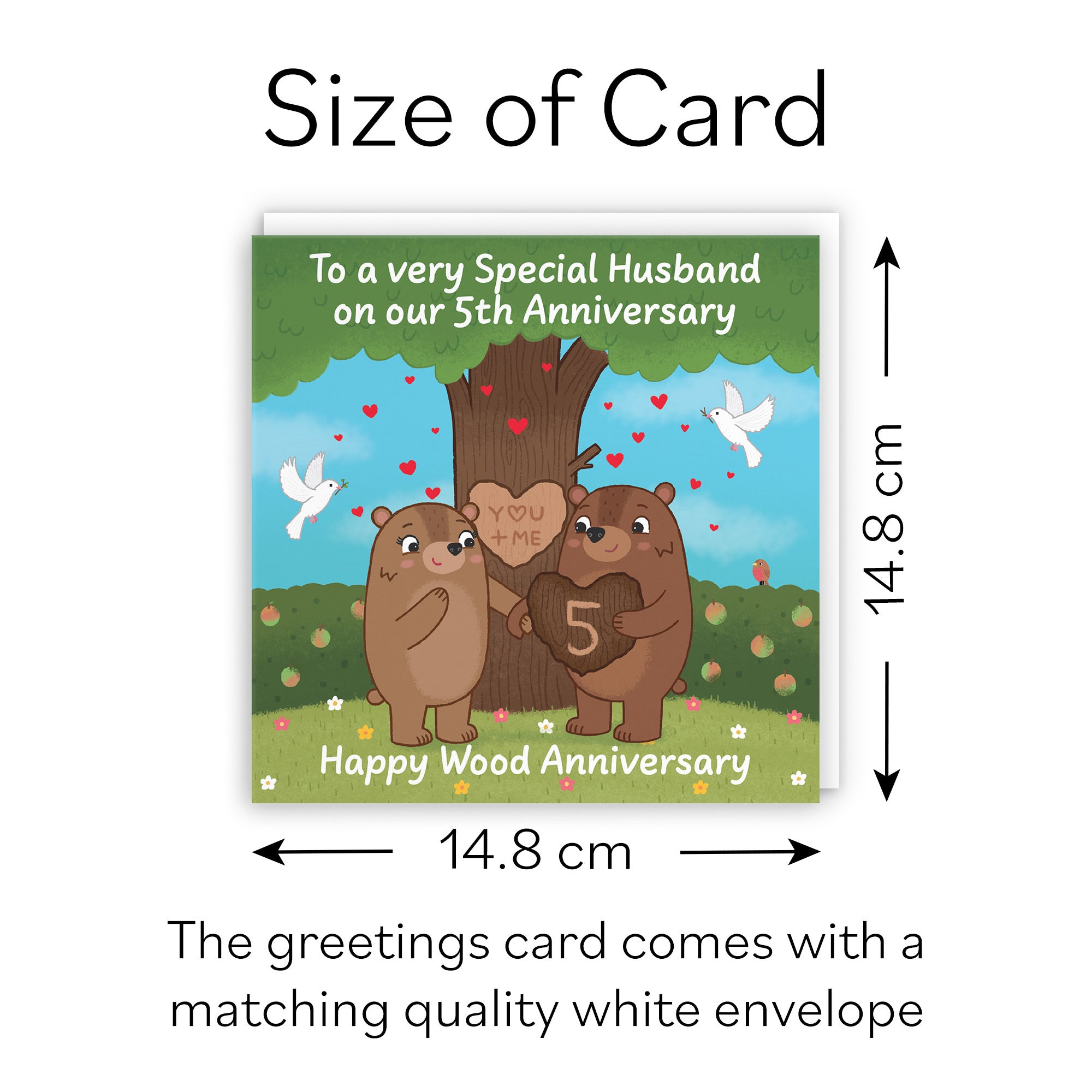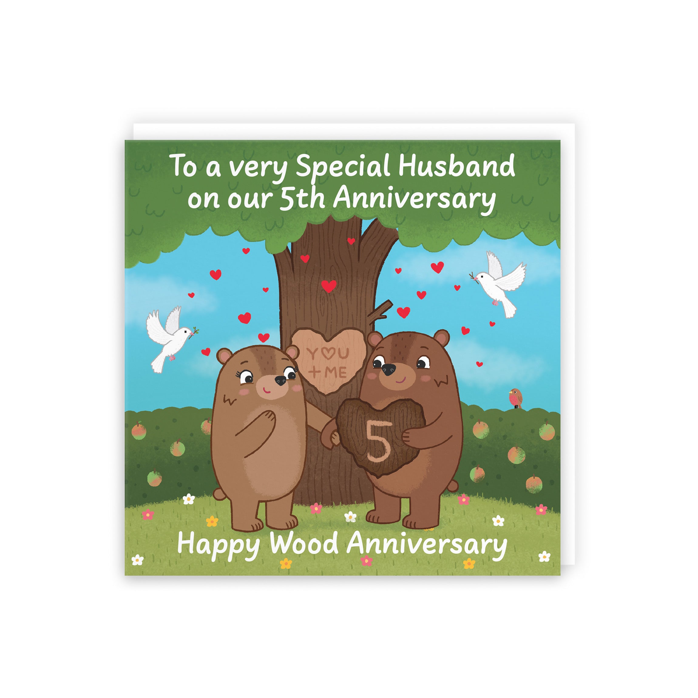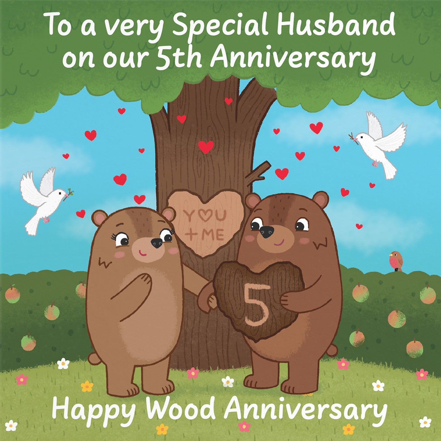 Hunts England - Husband 5th Anniversary Card - Wood Anniversary - Fifth Anniversary - 5 Years - Cute Fun Bears Card - Love Story Collection.