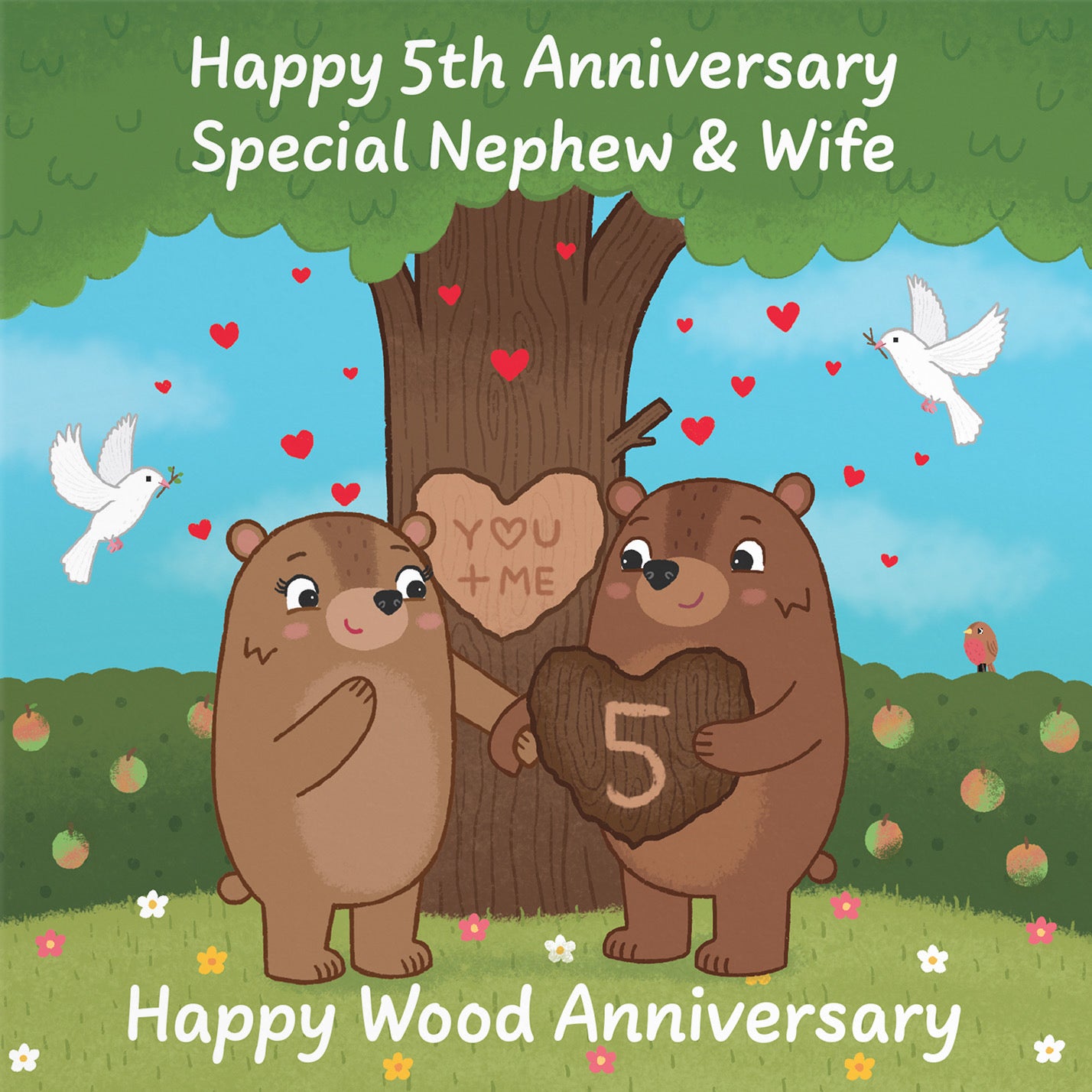 Hunts England - Nephew And Wife 5th Anniversary Card - Wood Anniversary - Fifth Anniversary - 5 Years - Cute Fun Bears Card - Love Story Collection.