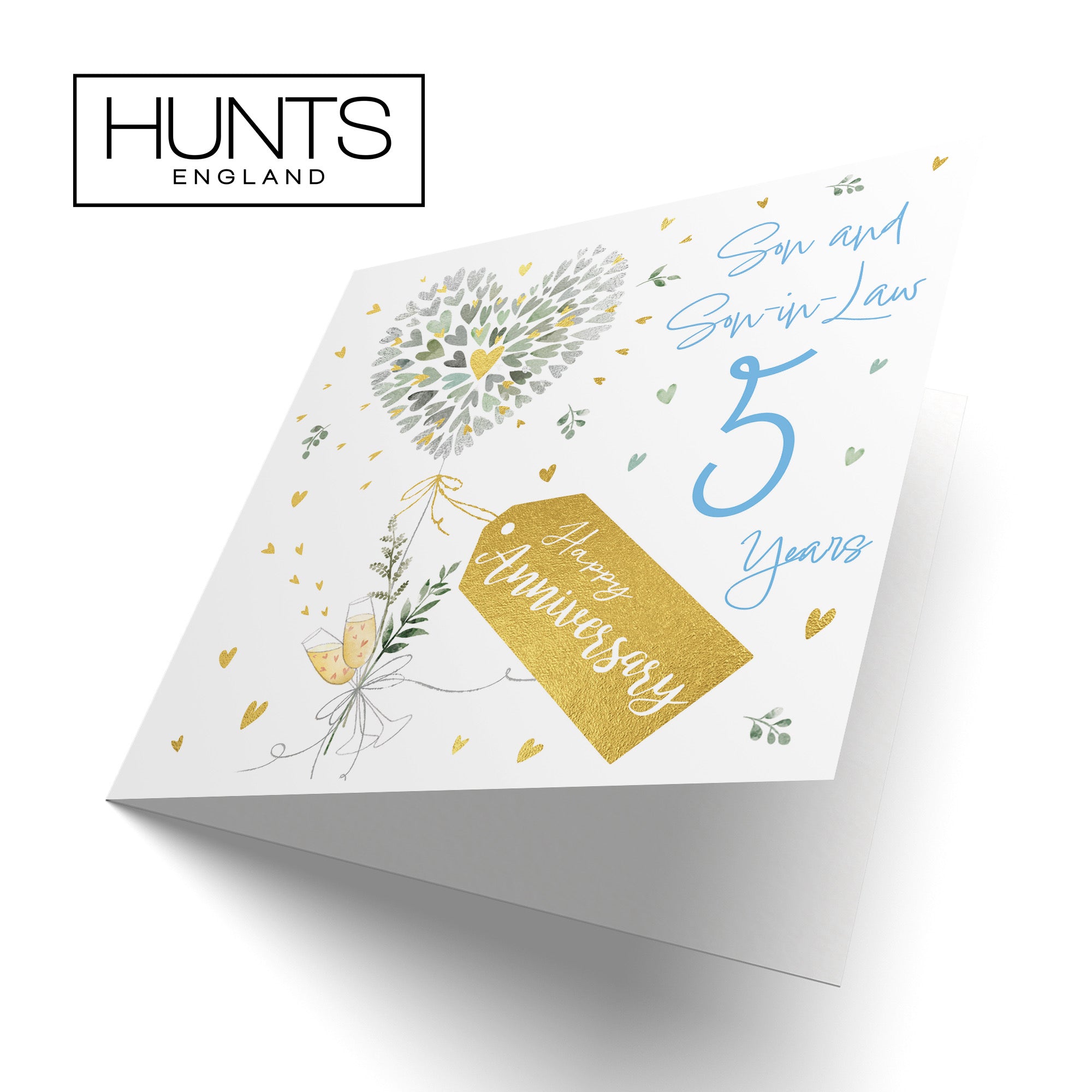 Son And Son-in-Law 5th Anniversary Card - 5 Years - Contemporary Hearts - Gold Foil - 5th Wedding Anniversary Card For Son And Son In Law - Milo's Gallery.