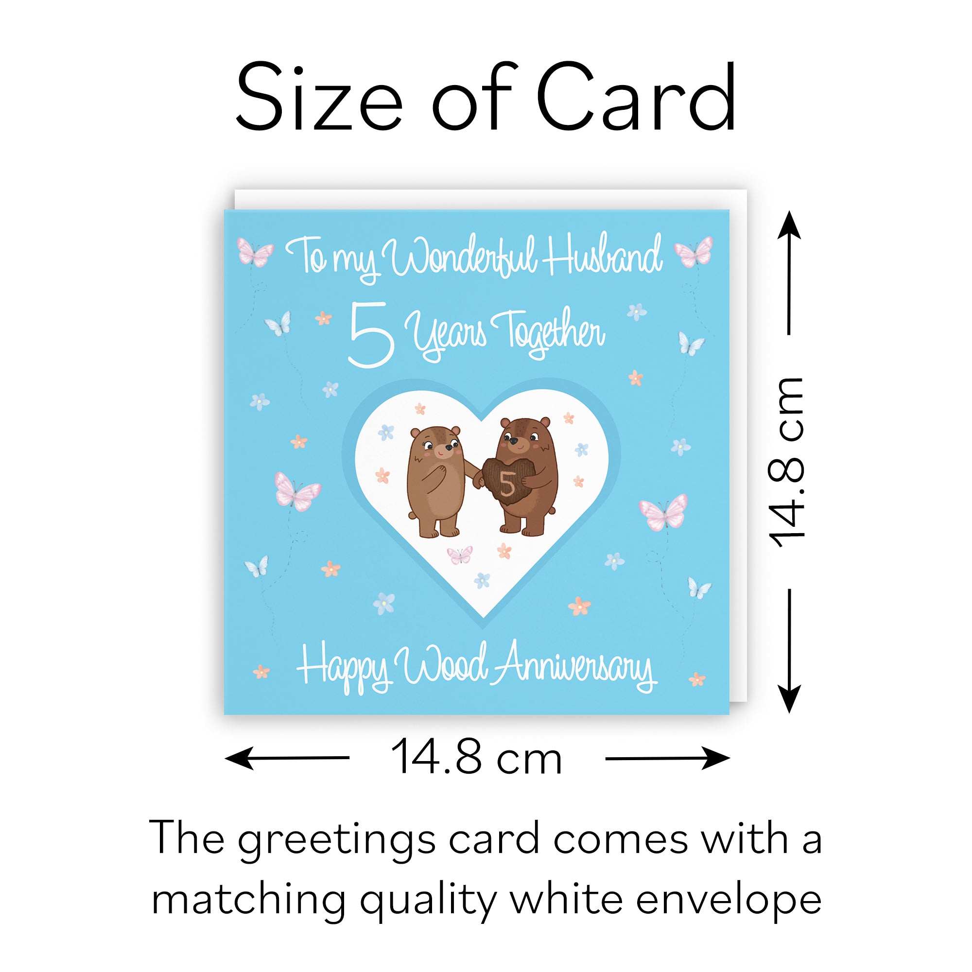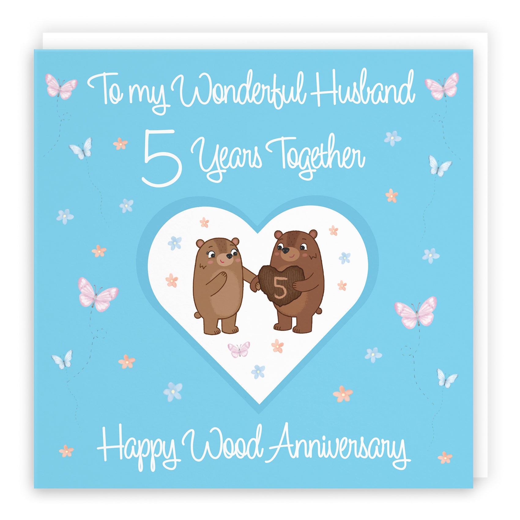 Hunts England - Husband 5th Anniversary Card - 5 Years - Wood Anniversary - Romantic Meadows Collection - Fifth Anniversary Card For Husband.