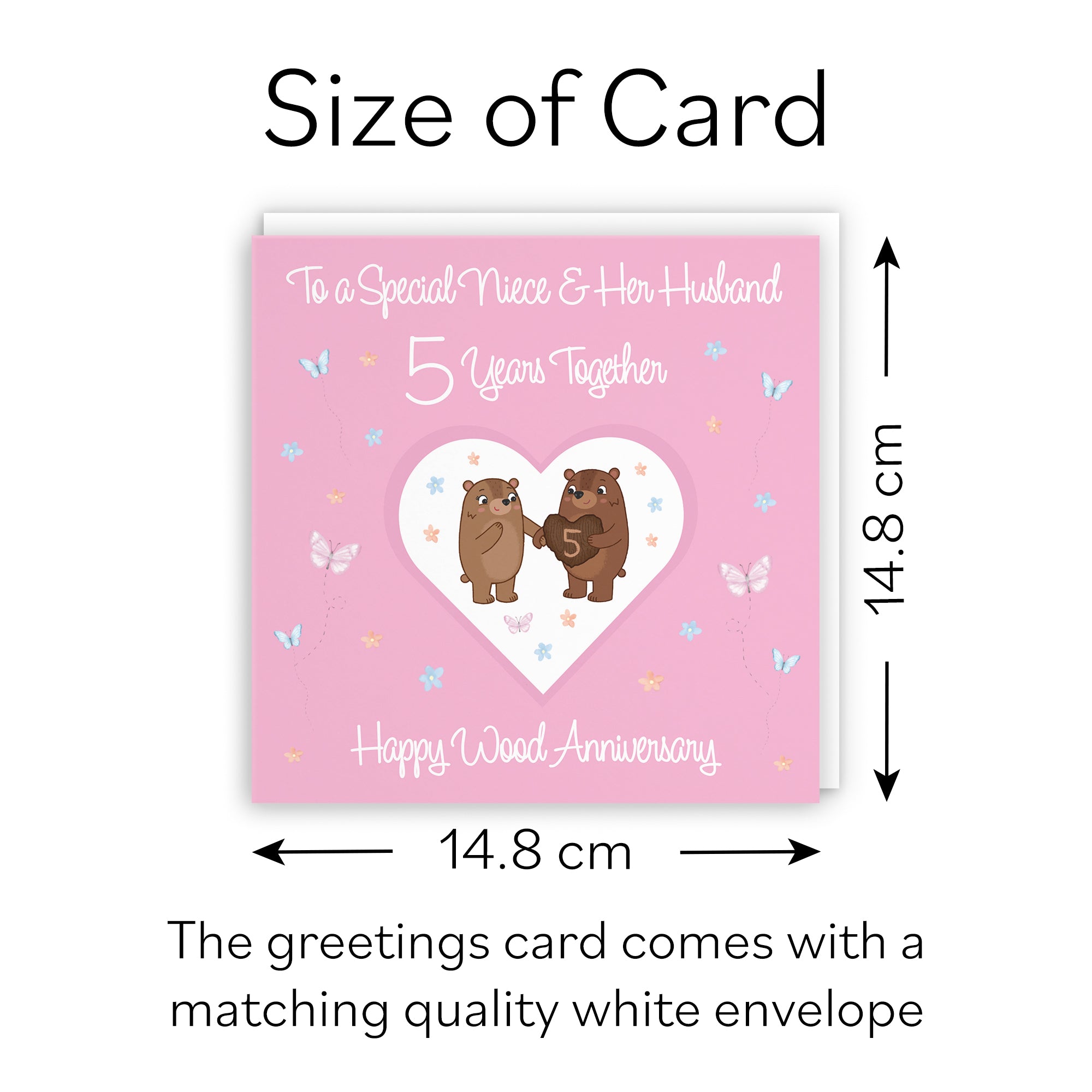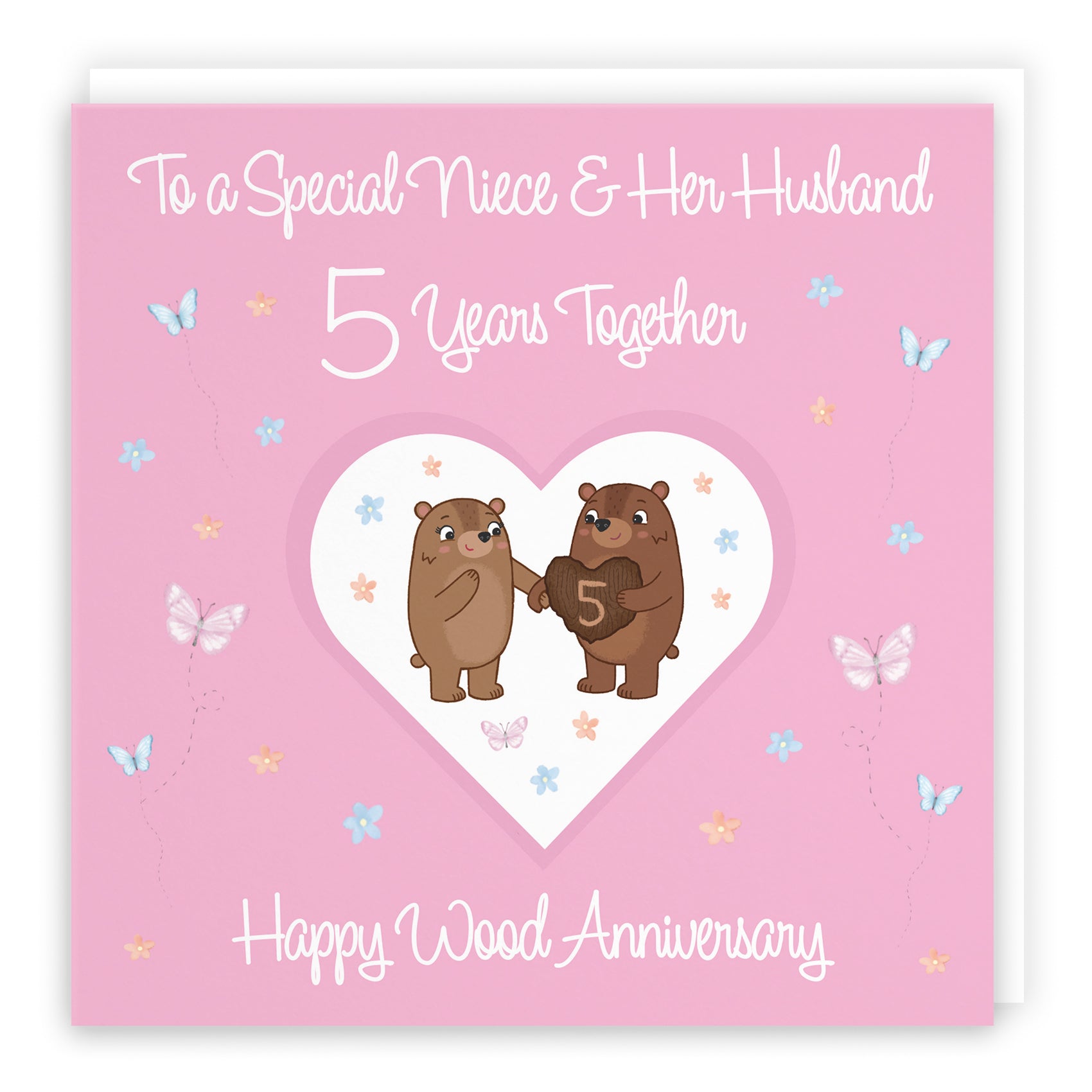 Hunts England - Niece & Husband 5th Anniversary Card - 5 Years - Wood Anniversary - Romantic Meadows Collection - Fifth Anniversary Card For Niece And Husband.