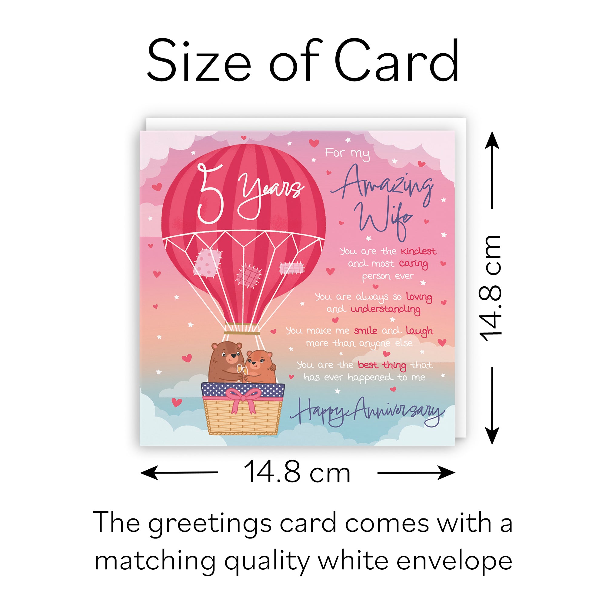 Hunts England - Wife 5th Anniversary Poem Card - Love Is In The Air - Love Verse - Cute Bears - 5th Anniversary Card For Wife - Romantic 5 Years Wife Anniversary Card.