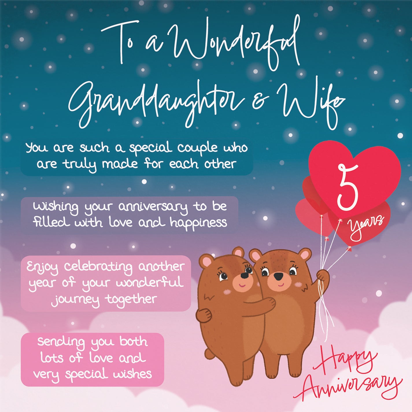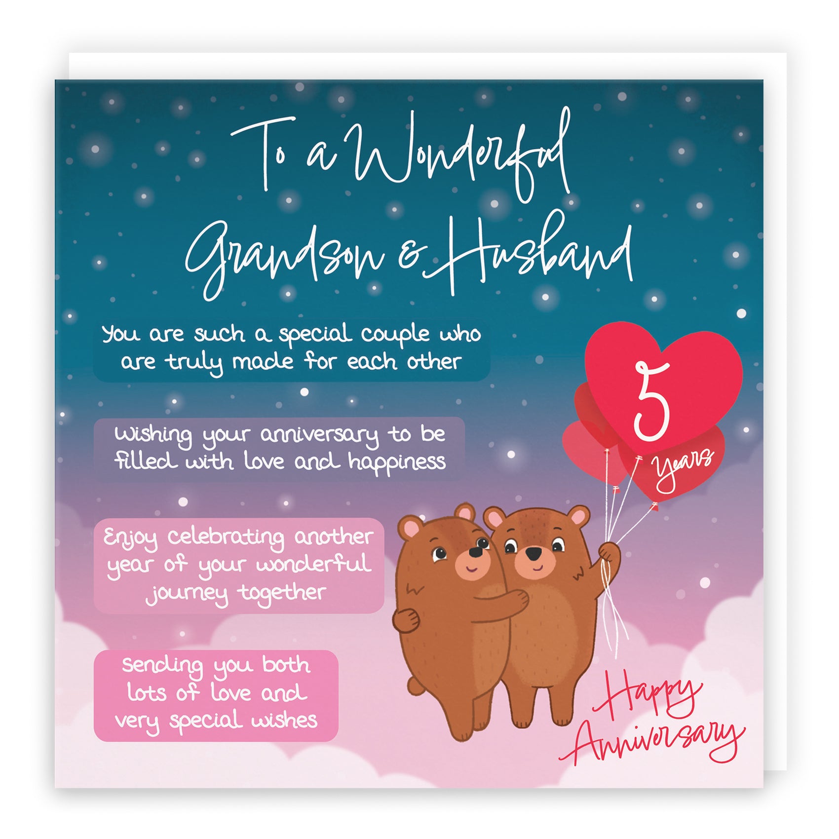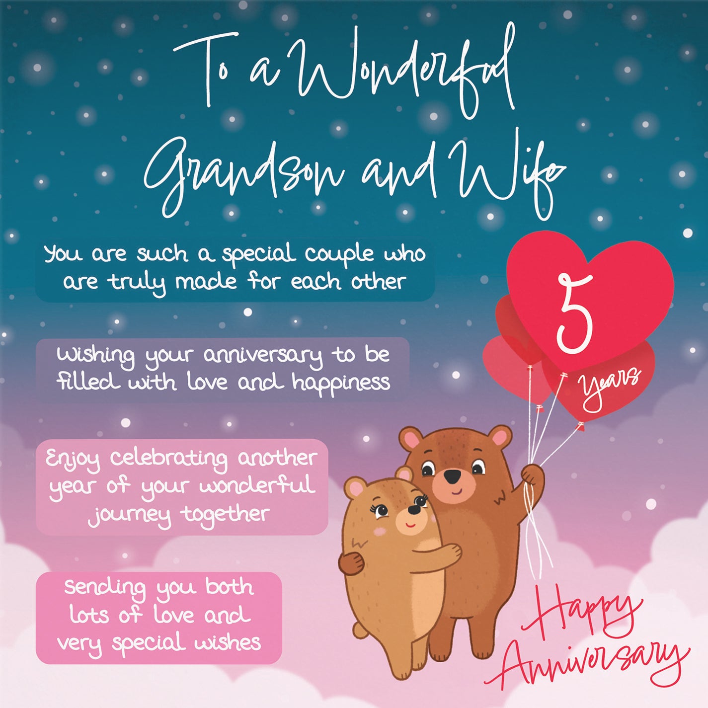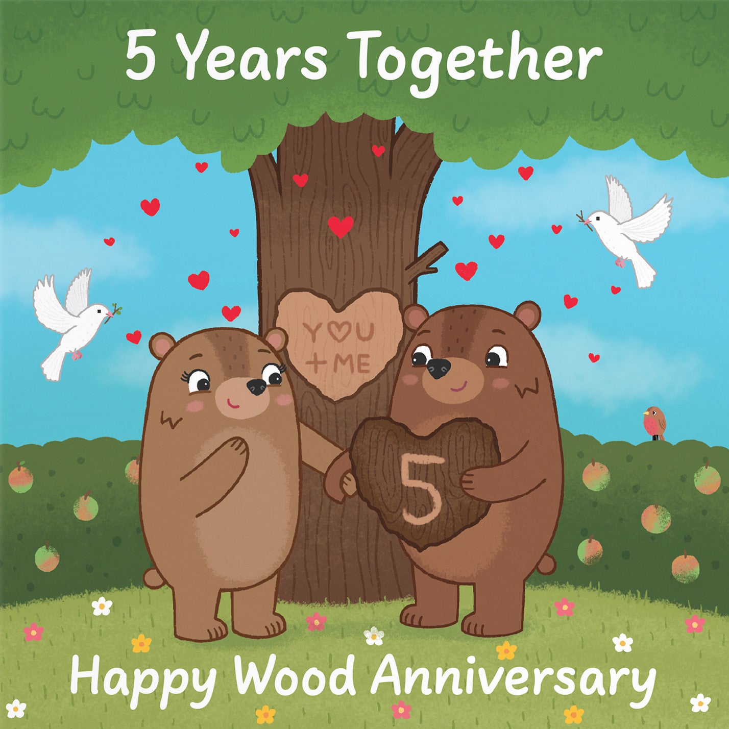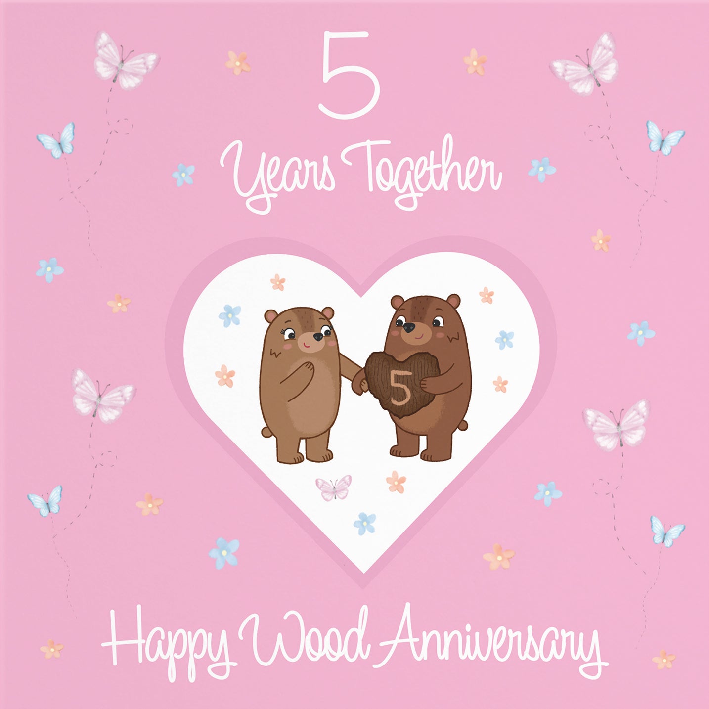 The 5th anniversary highlights wood as the traditional gift. Choose from meaningful designs for husbands, wives, and married couples.