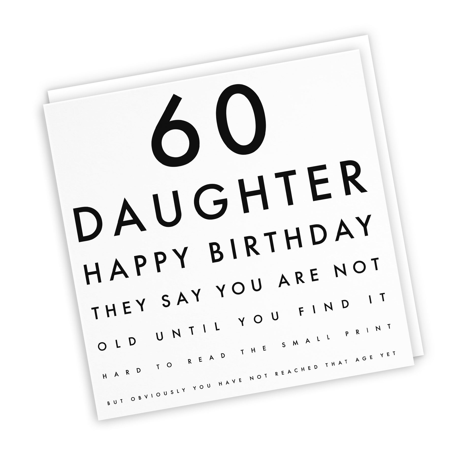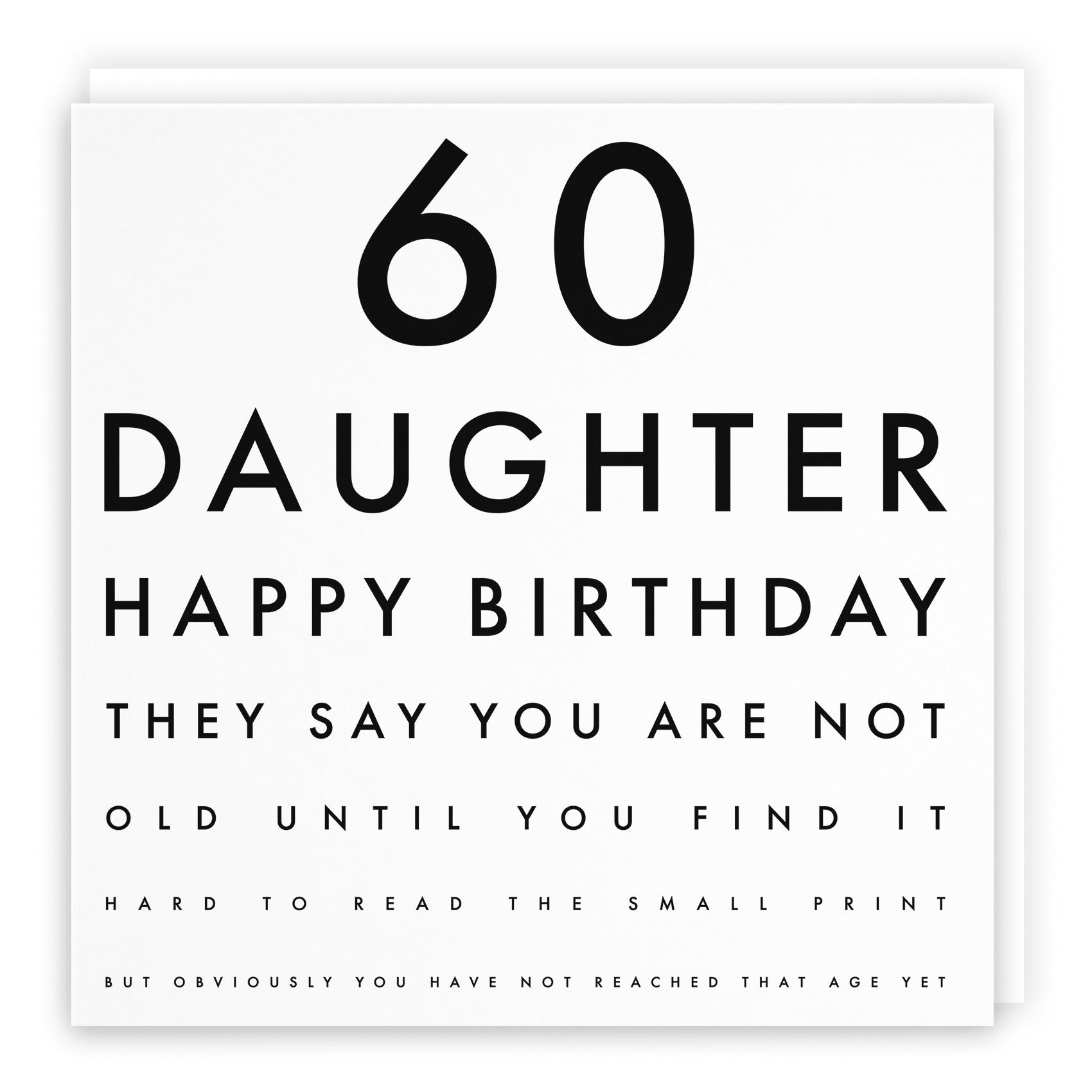Hunts England - Daughter 60th Humorous Birthday Card - 60 Daughter - Happy Birthday - They Say You Are Not Old Until You Find It Hard To Read The Small Print... - Letters Collection.