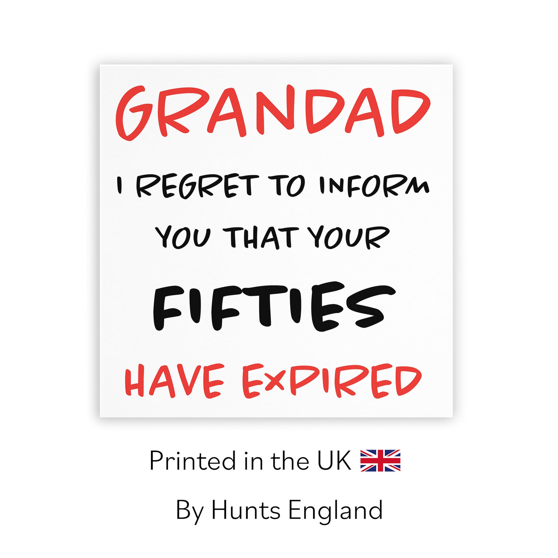 Hunts England - Grandad 60th Humorous Birthday Card - Grandad - I Regret To Inform You That Your Fifties Have Expired - Retro Collection.
