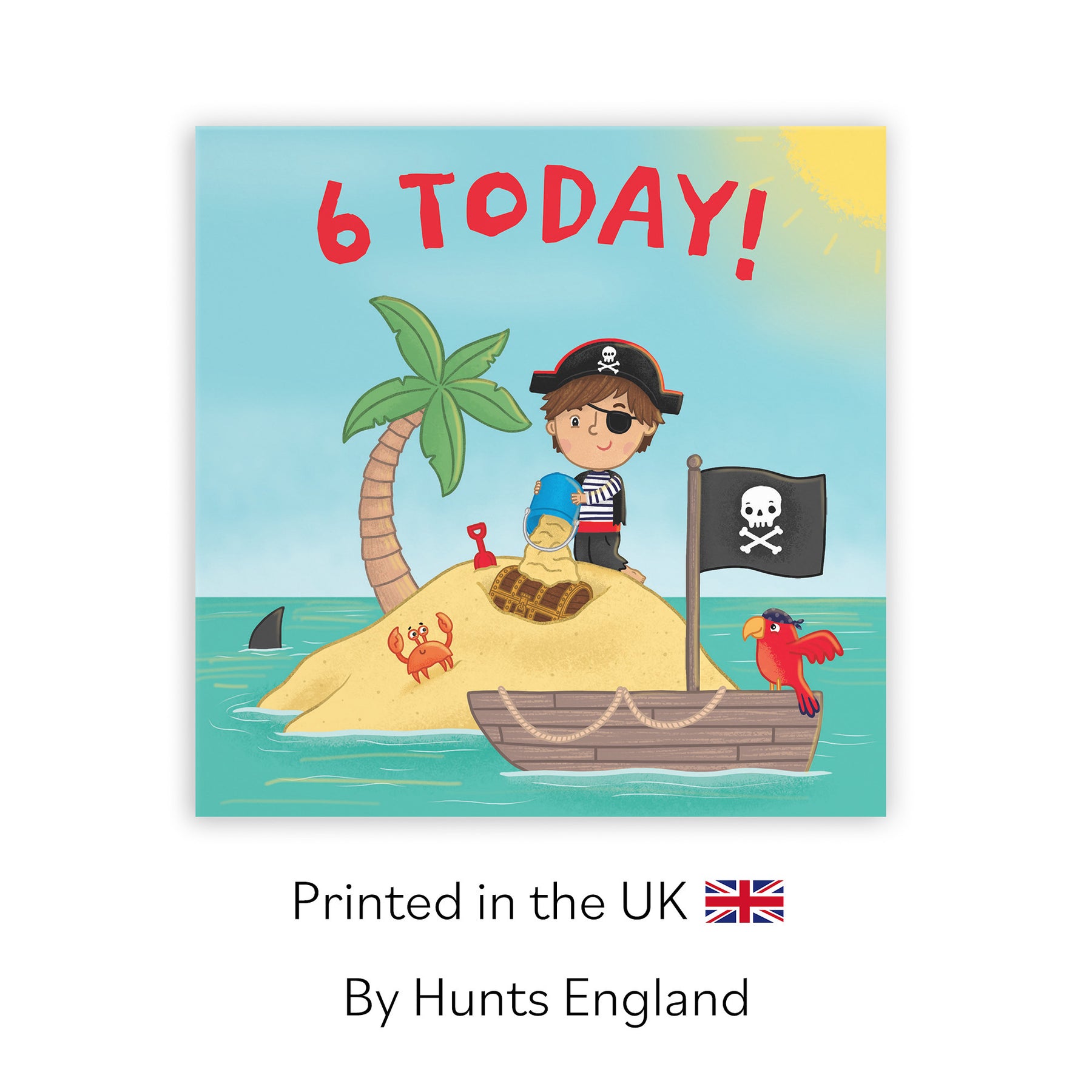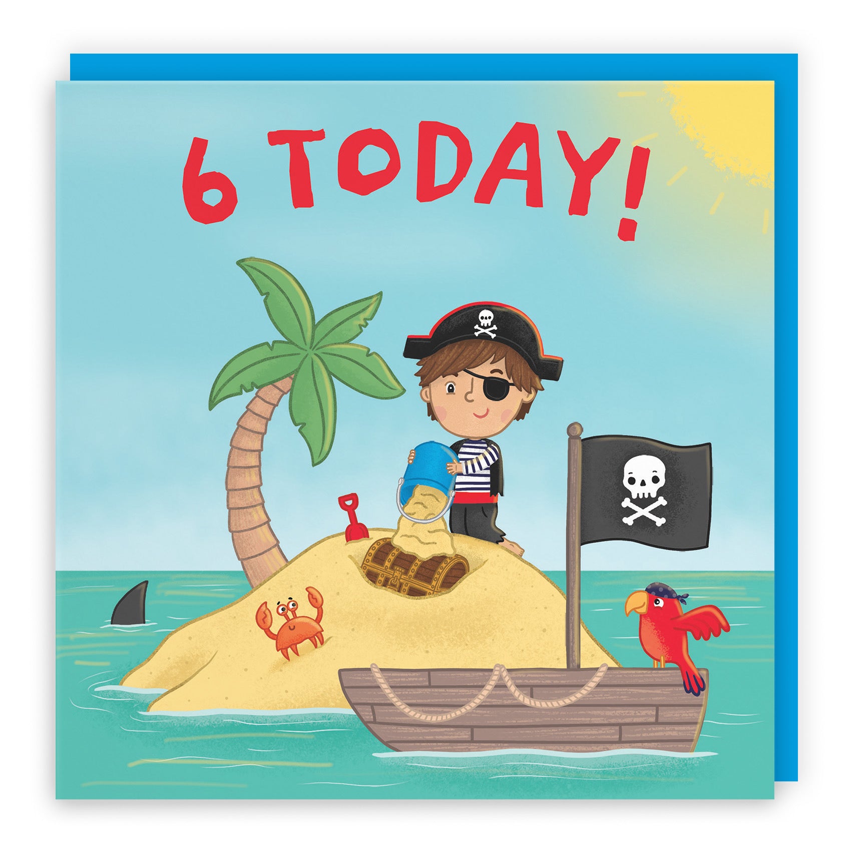 Hunts England - 6th Birthday Boys Children's Pirate Desert Island Card - 6 Today! - Age 6 - Imagination Collection.