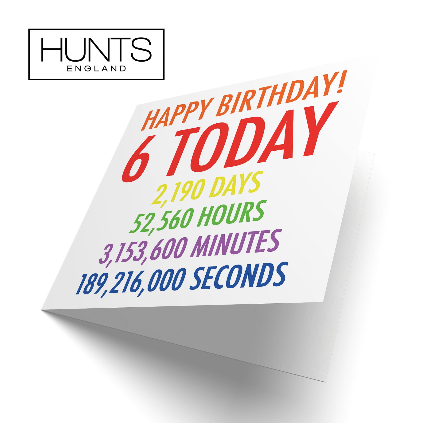 Hunts England - Funny 6th Birthday Card - Colourful - Happy Birthday - 6 Today - Numbers Collection - For Son, Daughter, Brother, Sister, Friend, Cousin, etc..