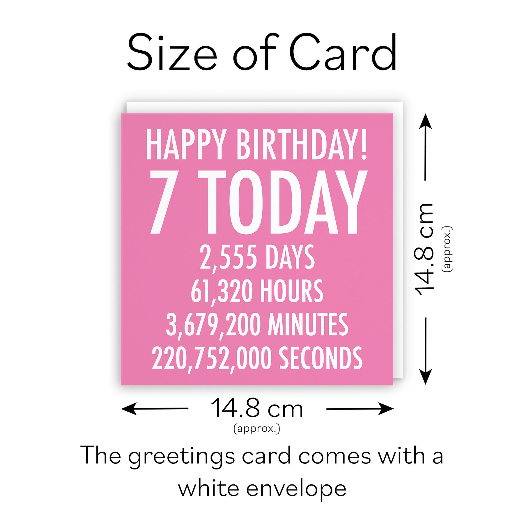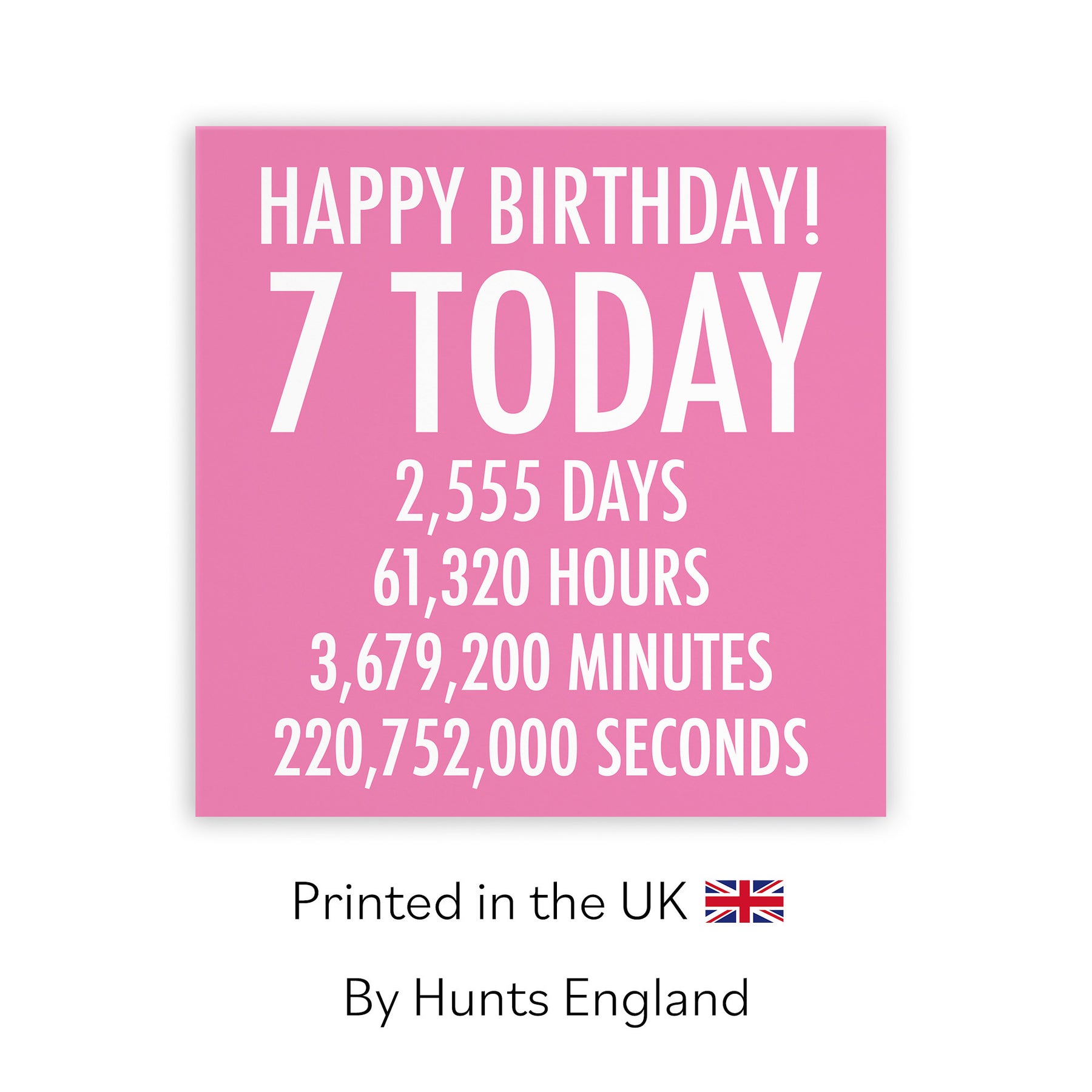 Hunts England - Funny 7th Birthday Card - Pink - Happy Birthday - 7 Today - Numbers Collection - For Daughter, Sister, Friend, Cousin, etc..