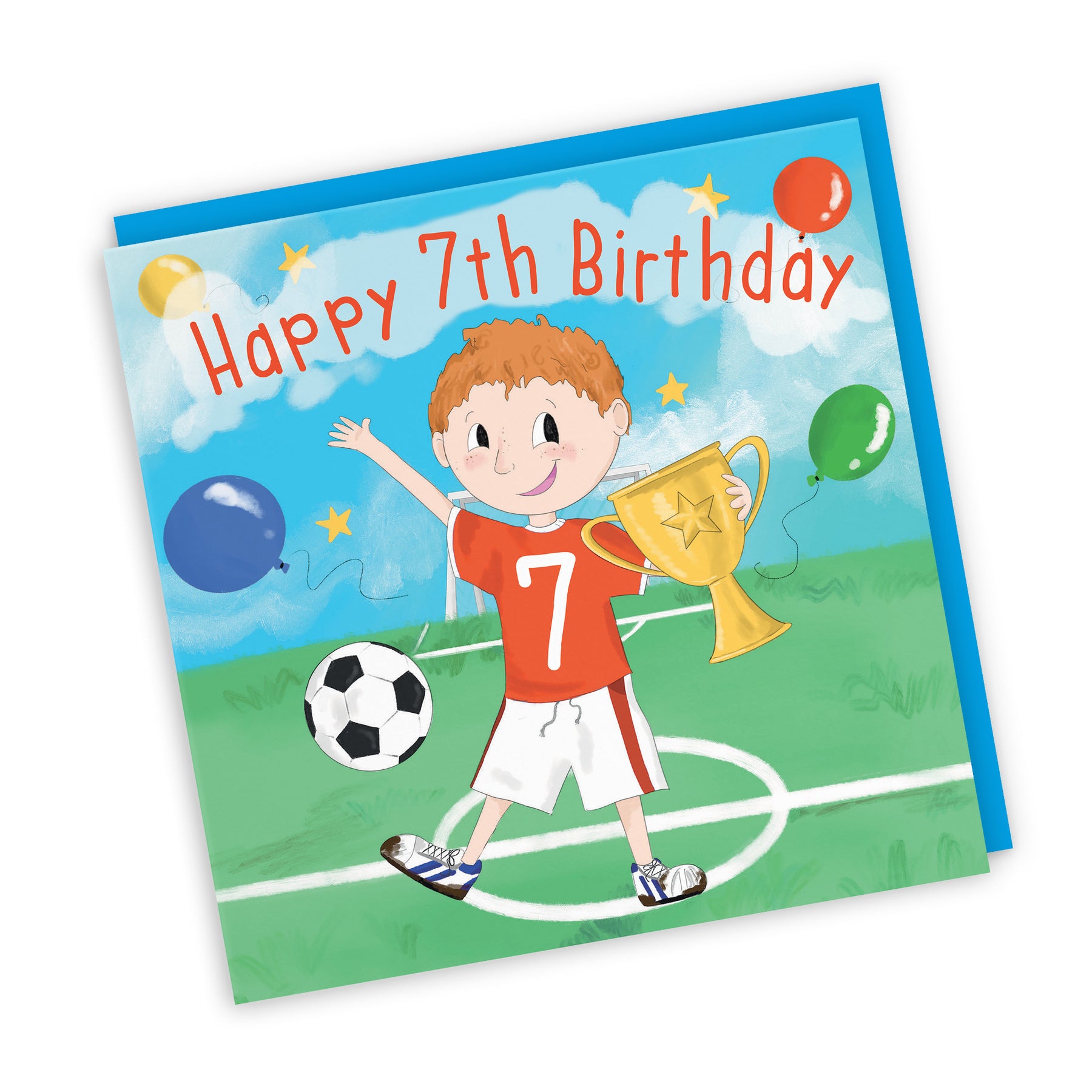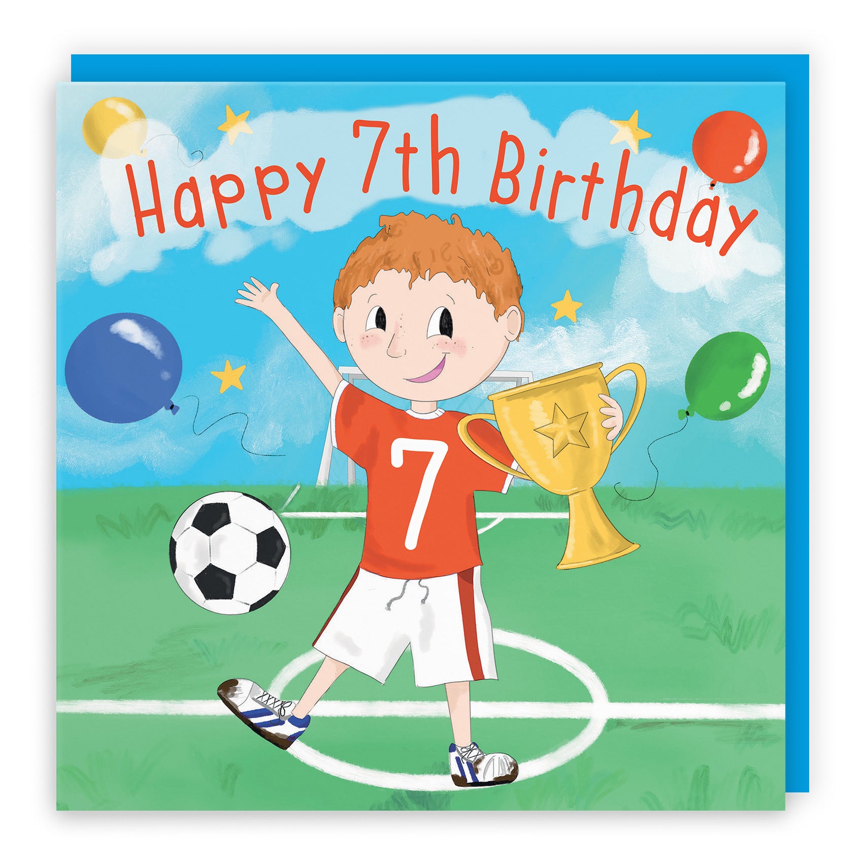 Hunts England - Boys 7th Birthday Football Kick-ups Card - Happy 7th Birthday - Age 7 - Adventurers Collection.