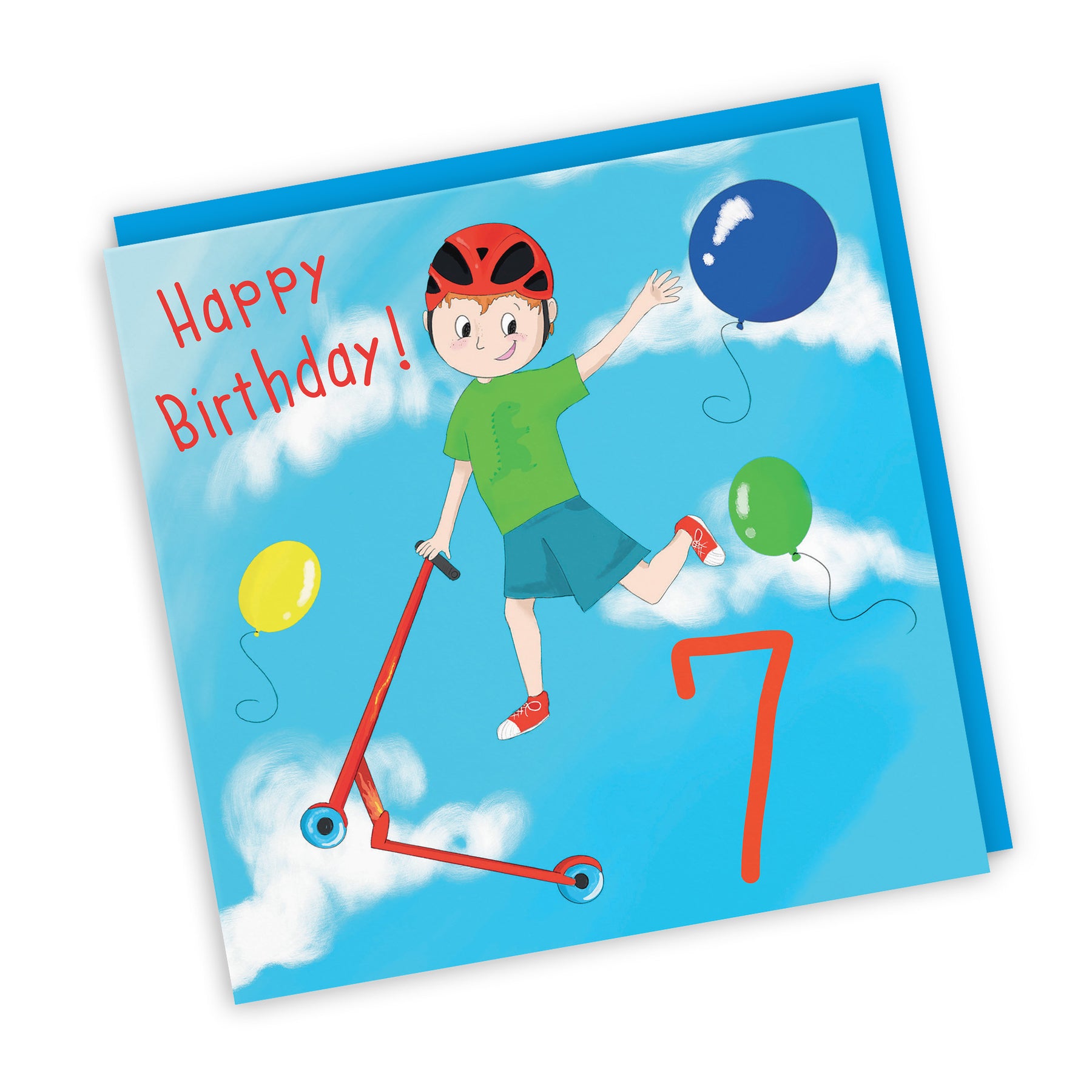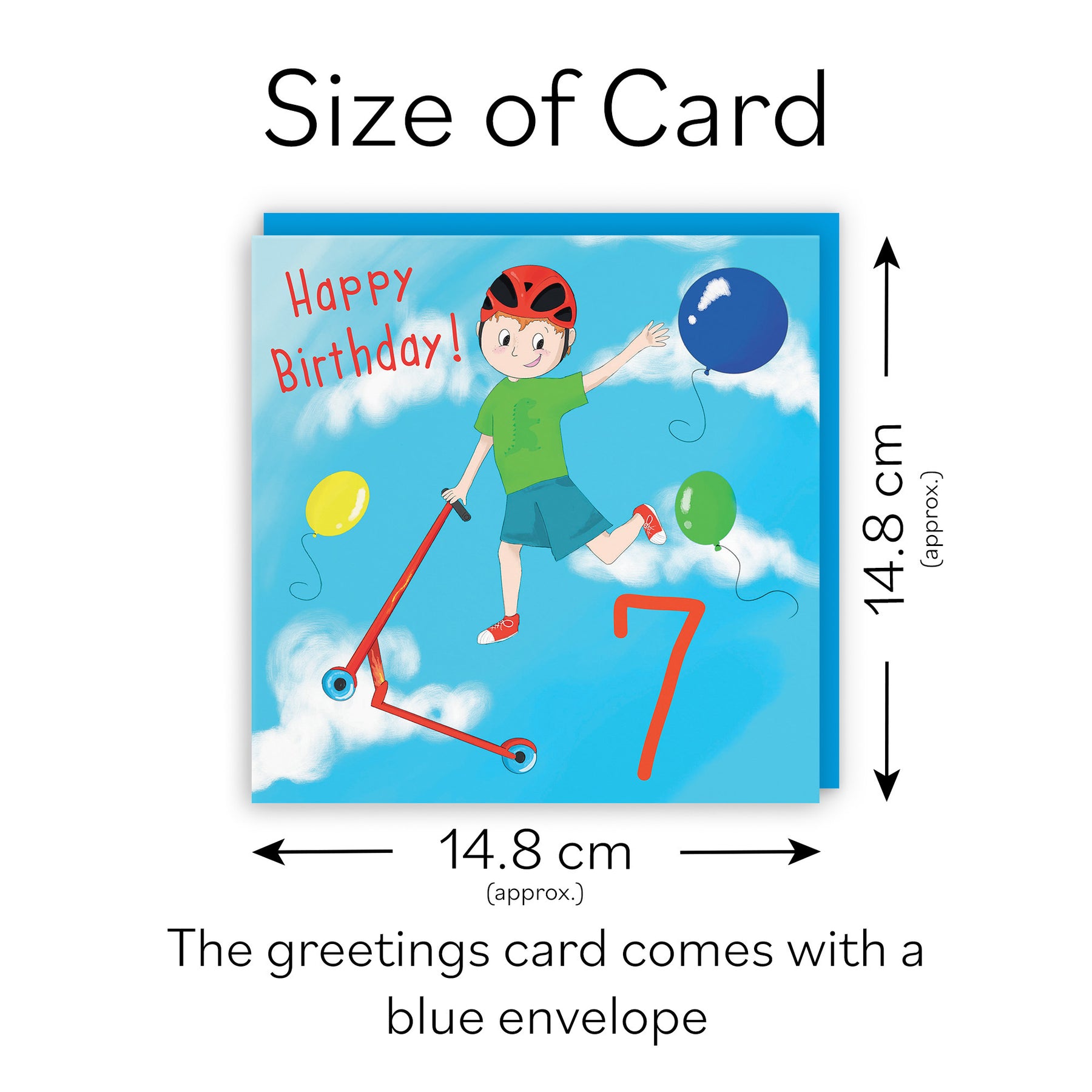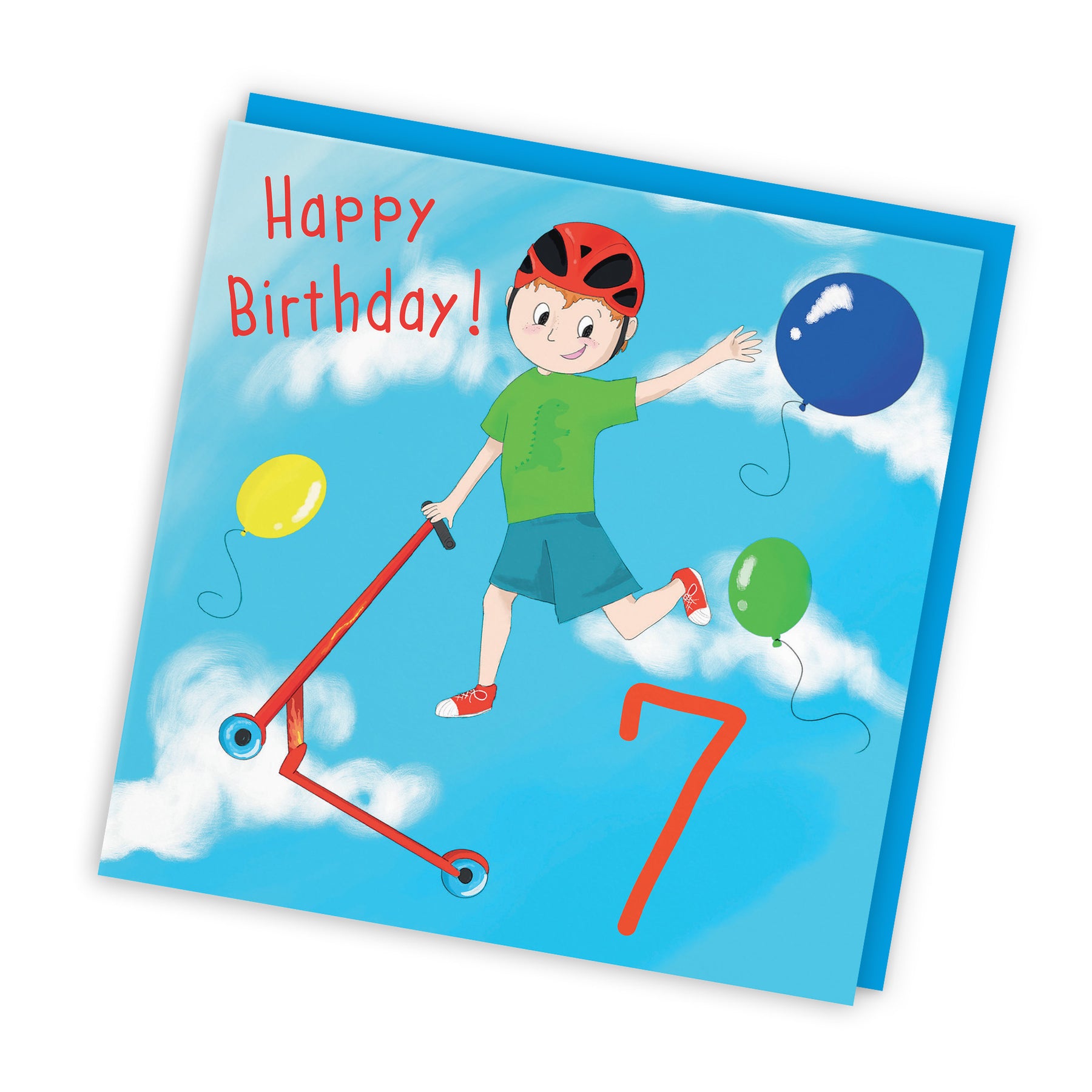 Hunts England - Boys 7th Birthday Tricks Scooter Children's Card - Happy Birthday! - 7 - Age 7 Card - Adventurers Collection.