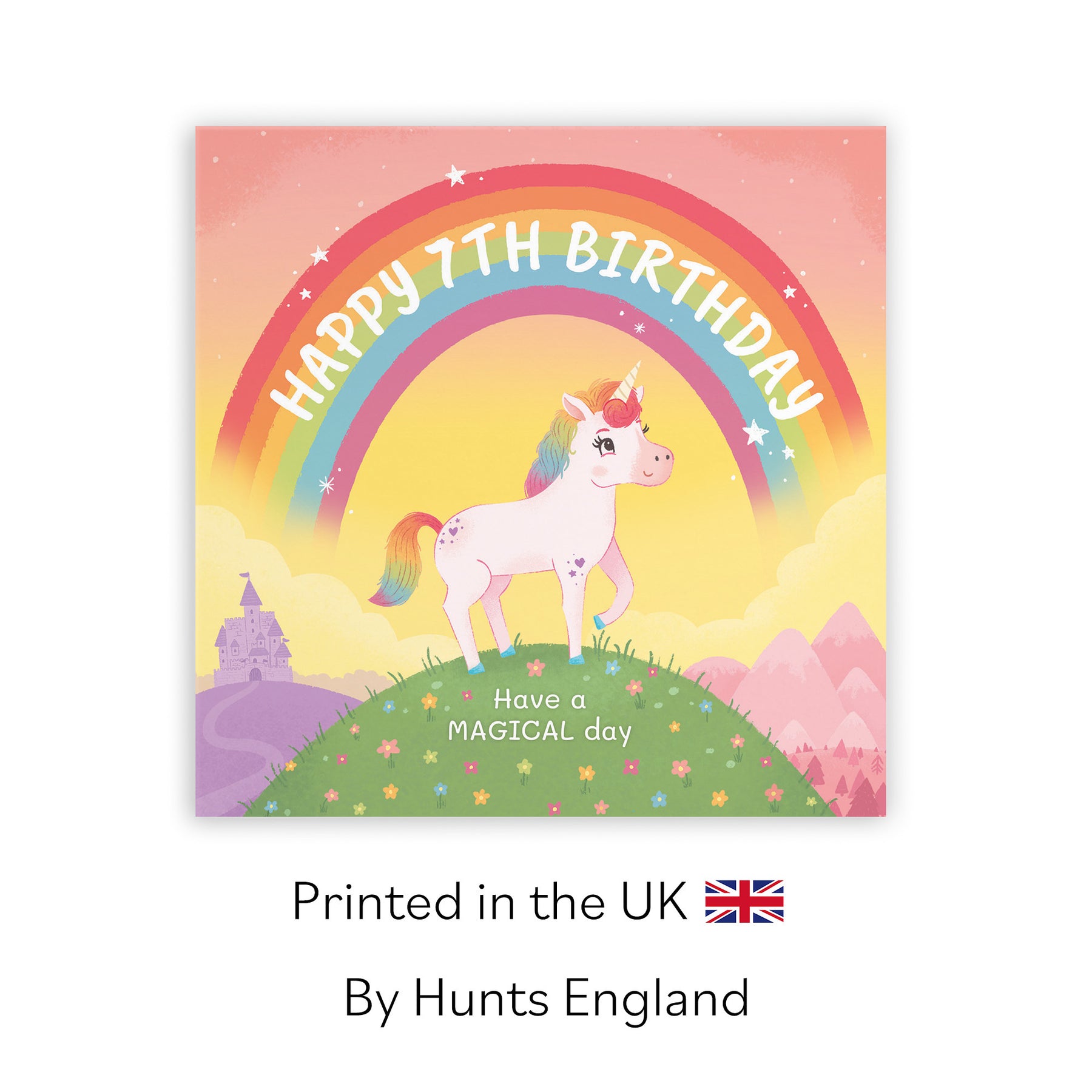 Hunts England - Unicorn Girls 7th Birthday Card - Happy 7th Birthday - Have A Magical Day - Age 7 - Imagination Collection.