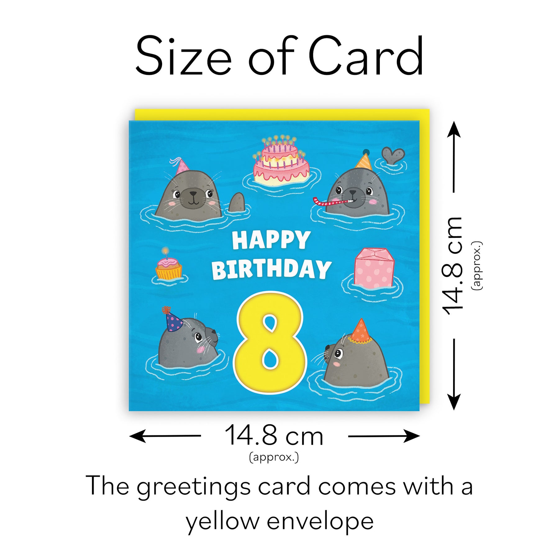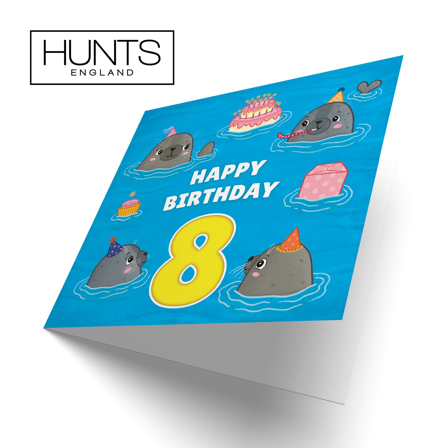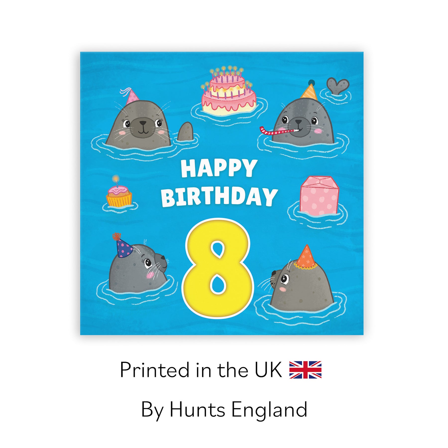 Hunts England - Cute Seals Boys / Girls 8th Birthday Card - Happy Birthday - 8 - Children's / Kids Card - Seals At A Party - Ocean Collection.