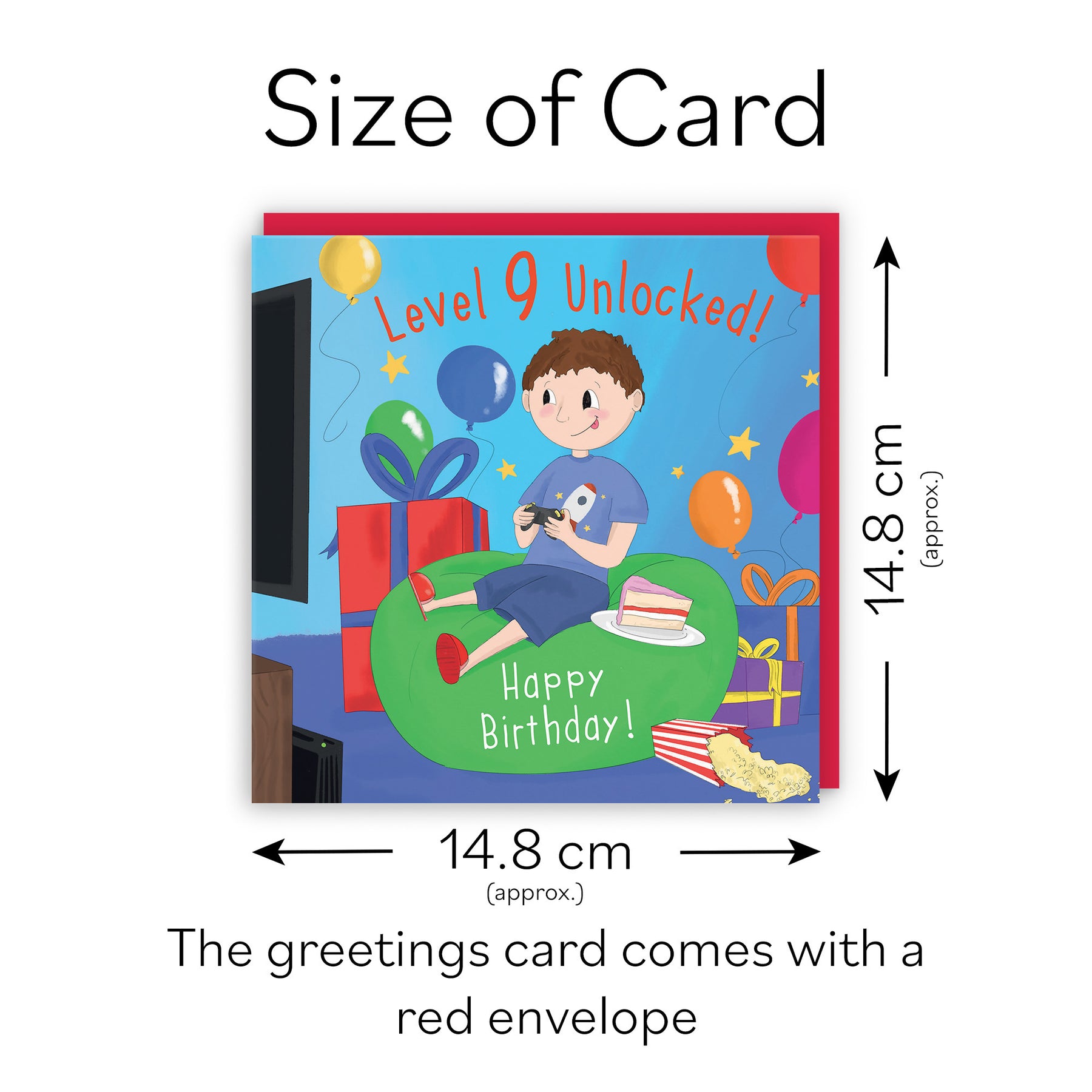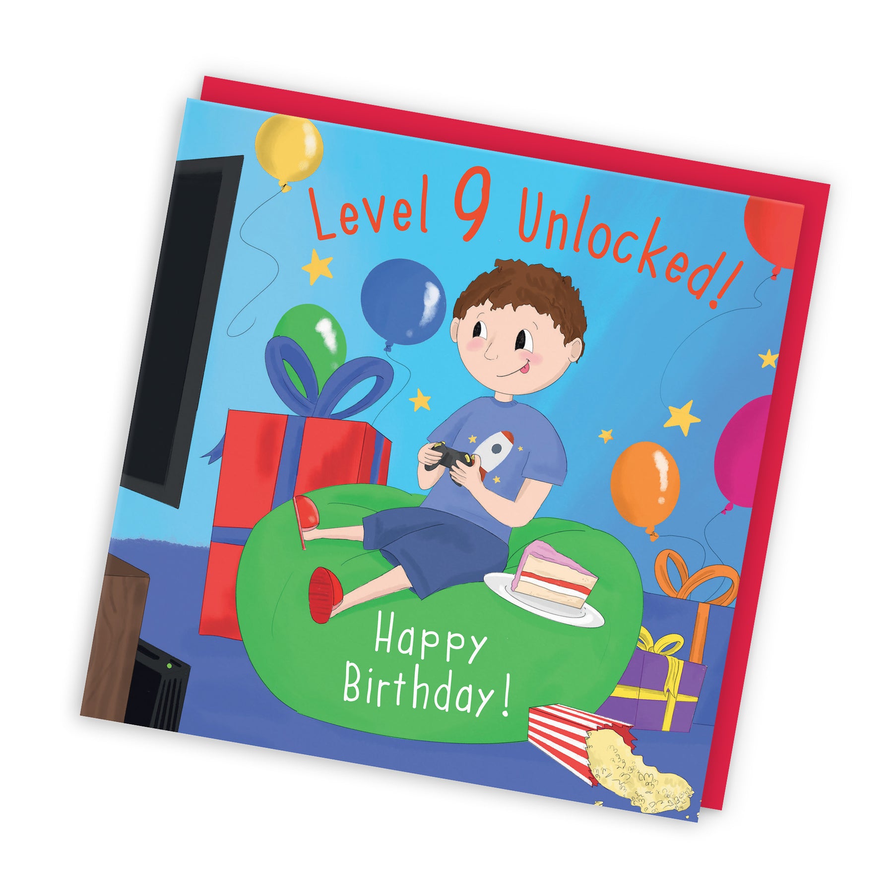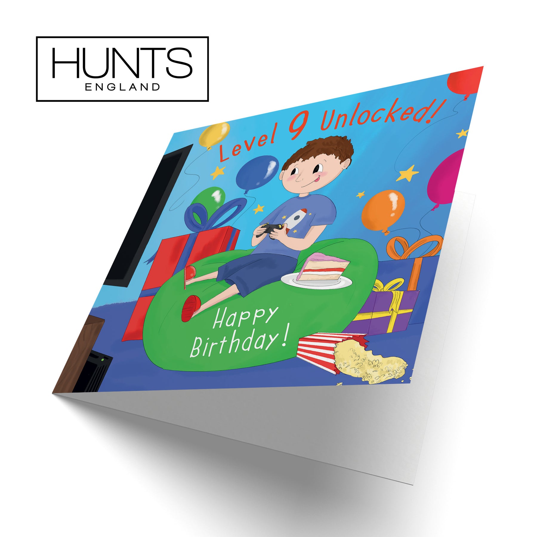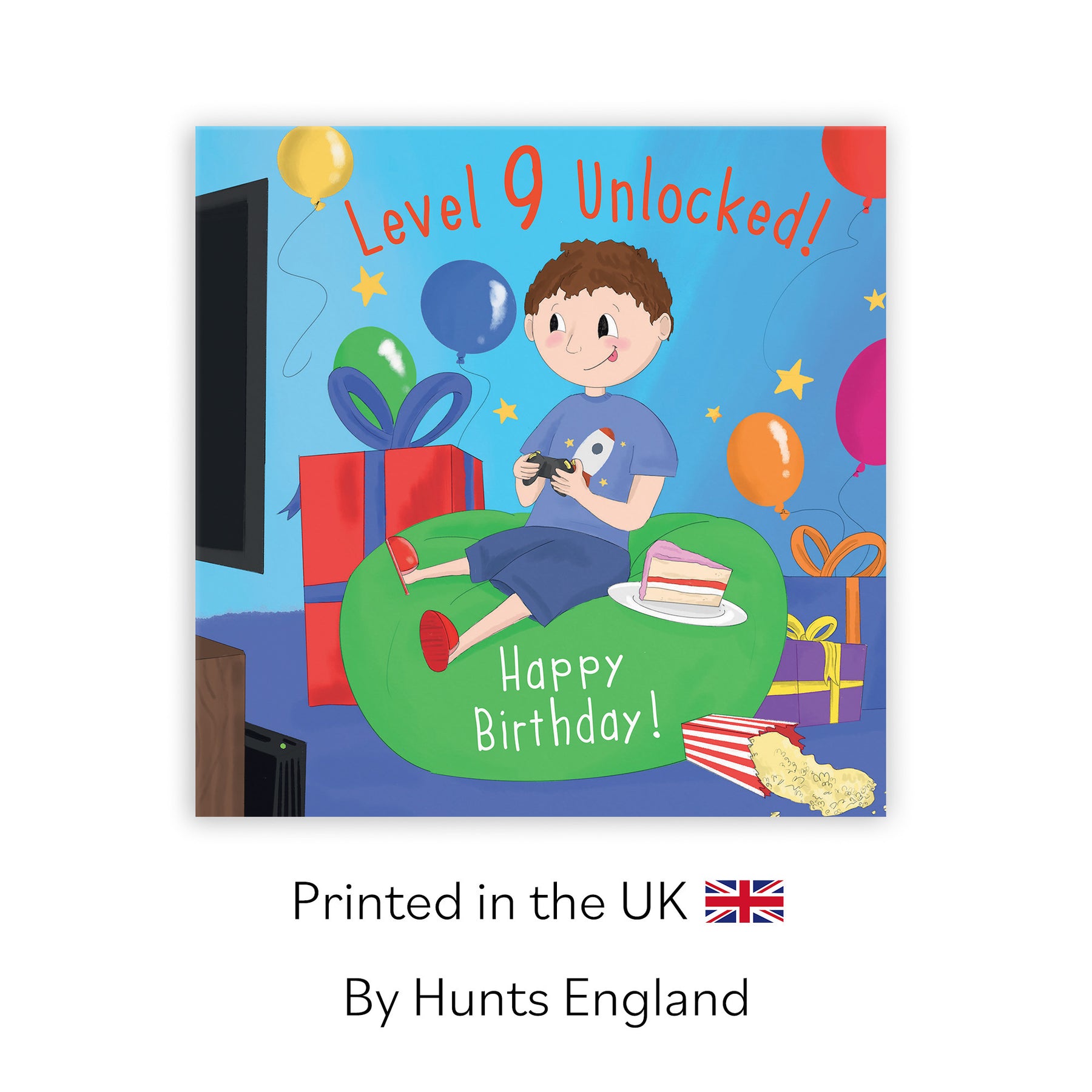 Hunts England - Boys 9th Birthday Gaming Card - Level 9 Unlocked! - Happy Birthday! - Kids TV & Games Console Card - Adventurers Collection.
