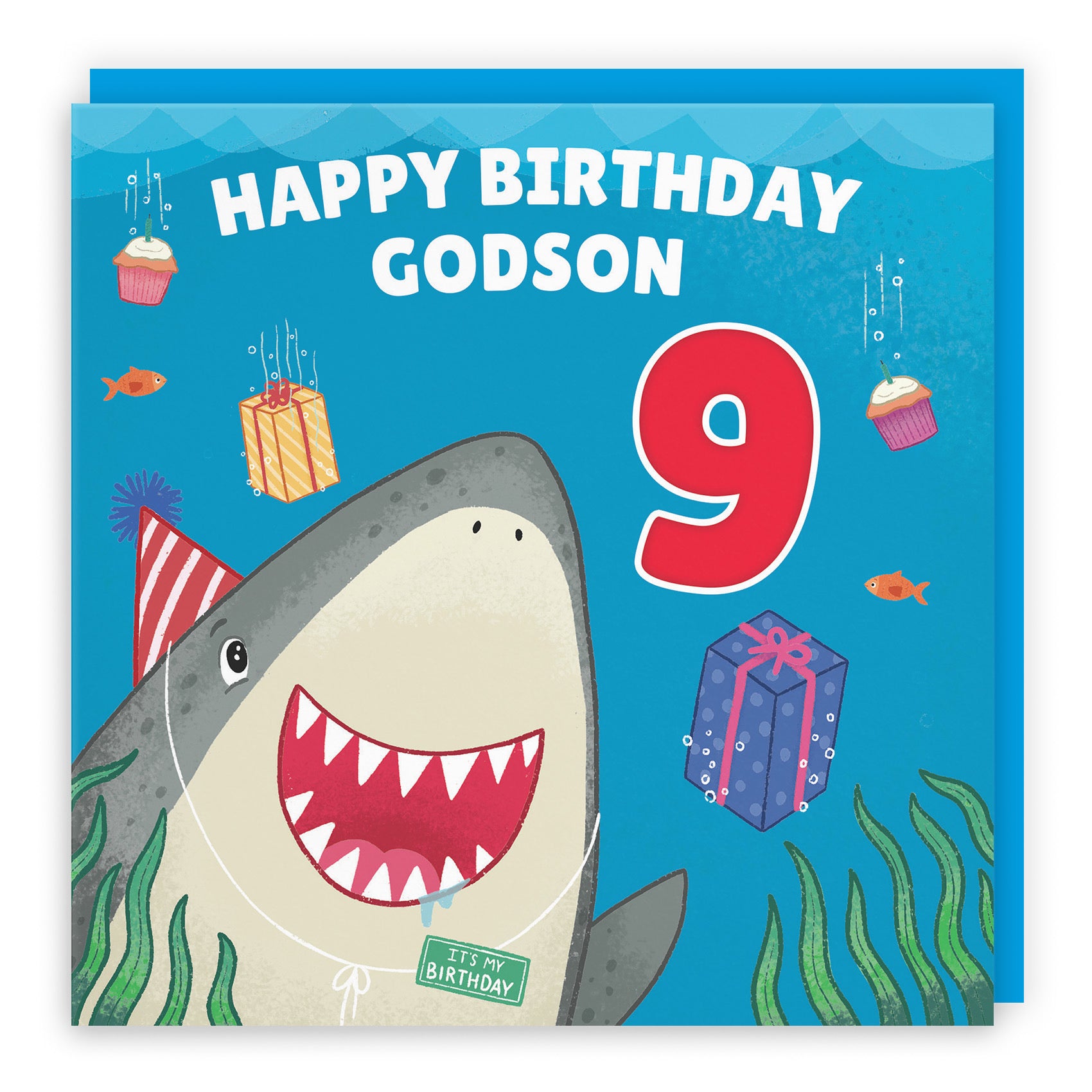 Hunts England - Godson 9th Cute Shark Birthday Card - Happy Birthday - Godson - 9 - Children's / Kids Card - Ocean Collection.