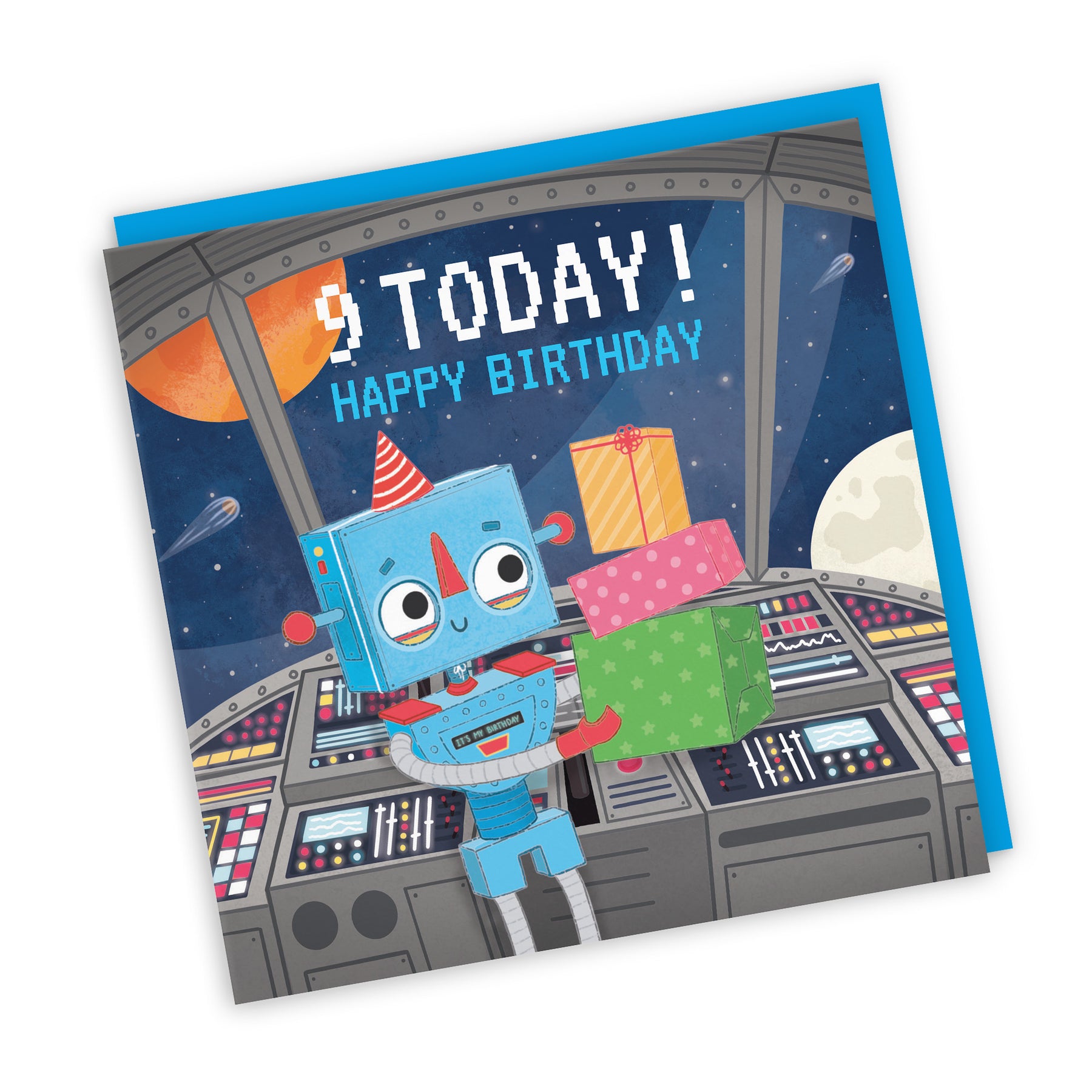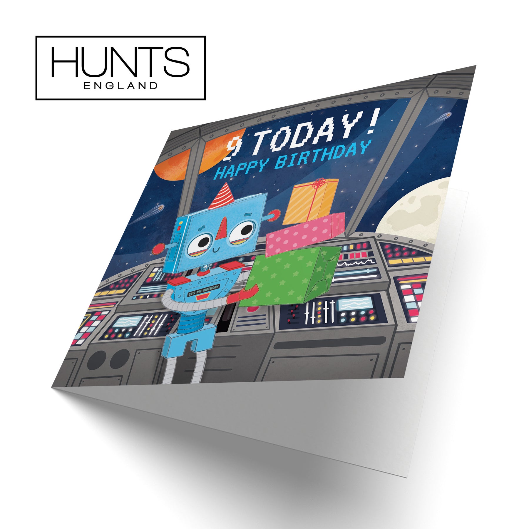 Hunts England - Space Robot Boys 9th Birthday Card - 9 Today! - Happy Birthday - Robot On A Spaceship - Children's / Kids Card - Imagination Collection.