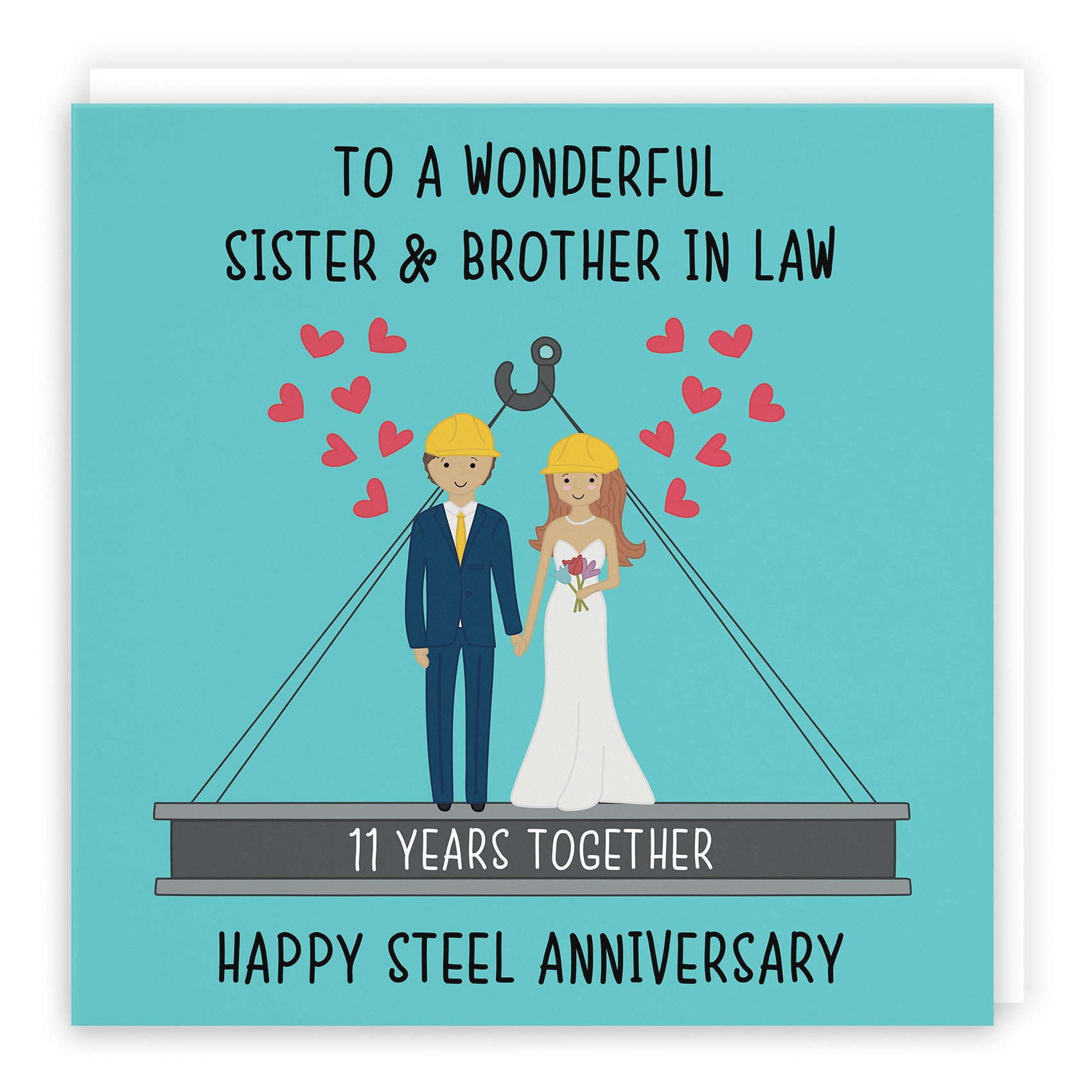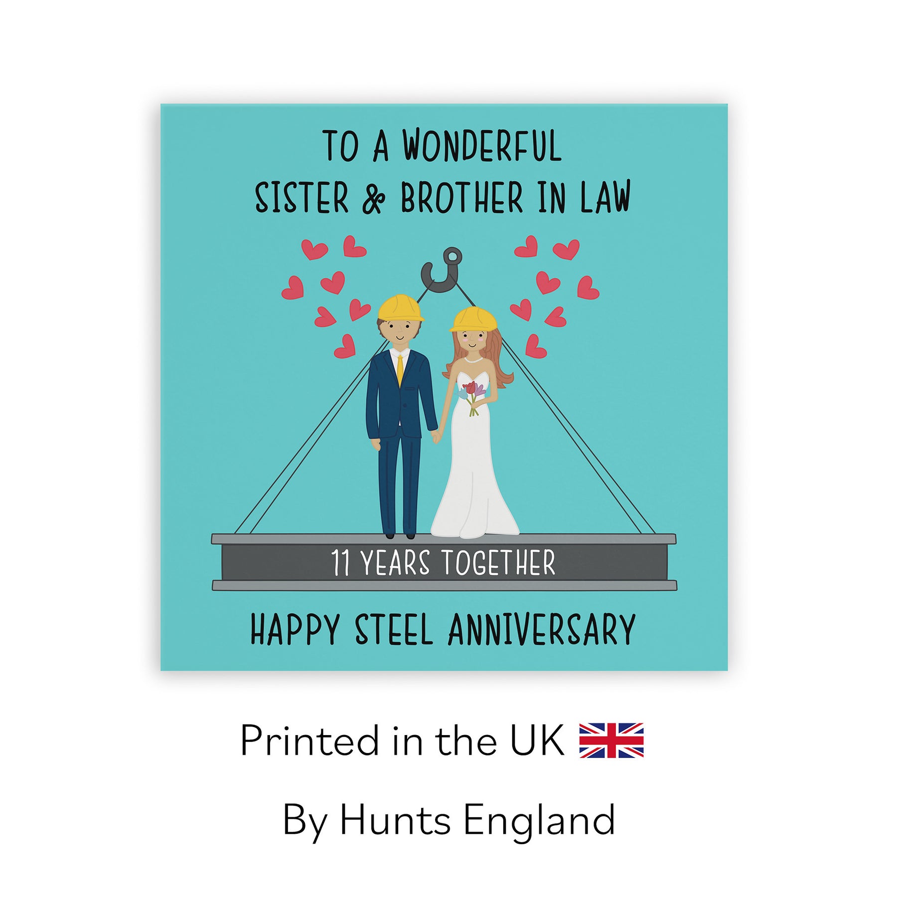 Hunts England - Sister And Brother In Law 11th Anniversary Card - To A Wonderful Sister & Brother In Law - 11 Years Together - Happy Steel Anniversary - Iconic Collection.