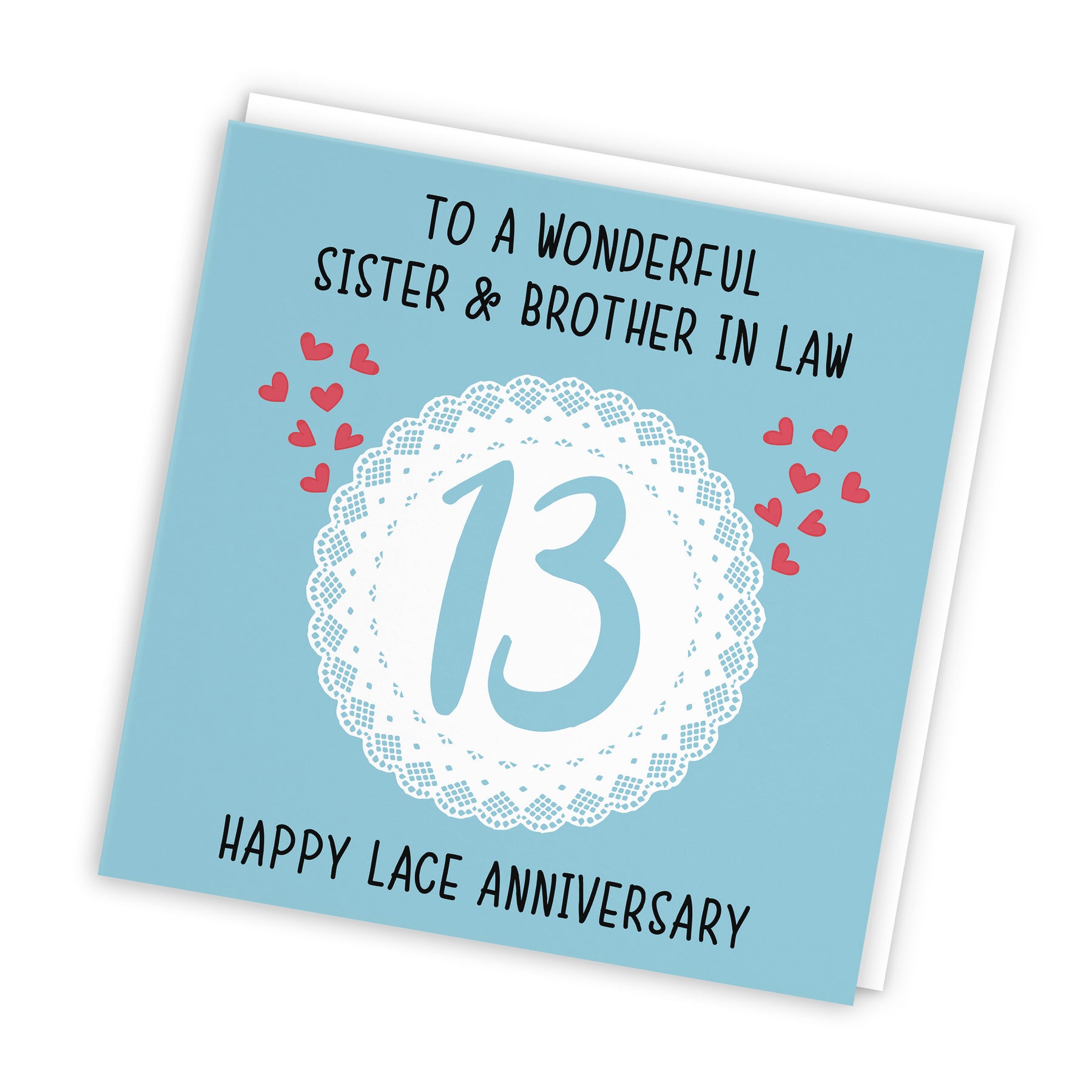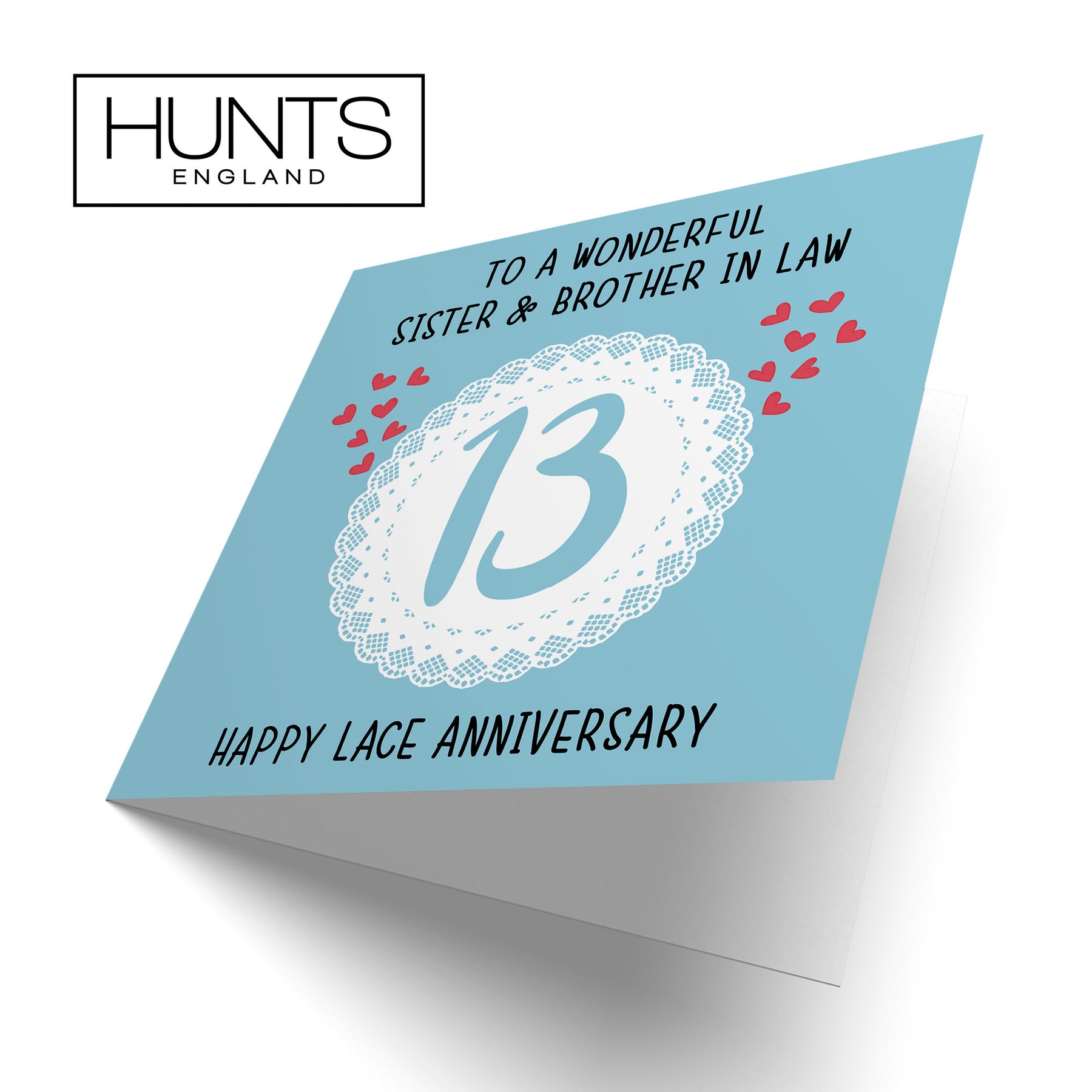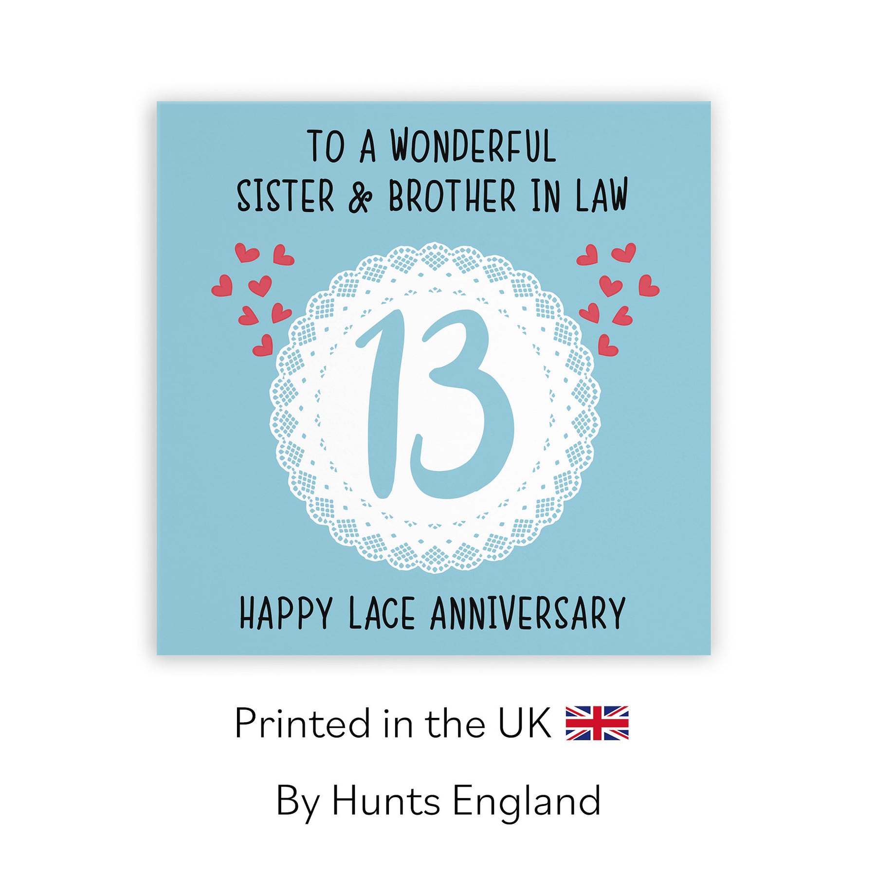 Hunts England - Sister And Brother In Law 13th Anniversary Card - To A Wonderful Sister & Brother In Law - 13 Years Together - Happy Lace Anniversary - Iconic Collection.