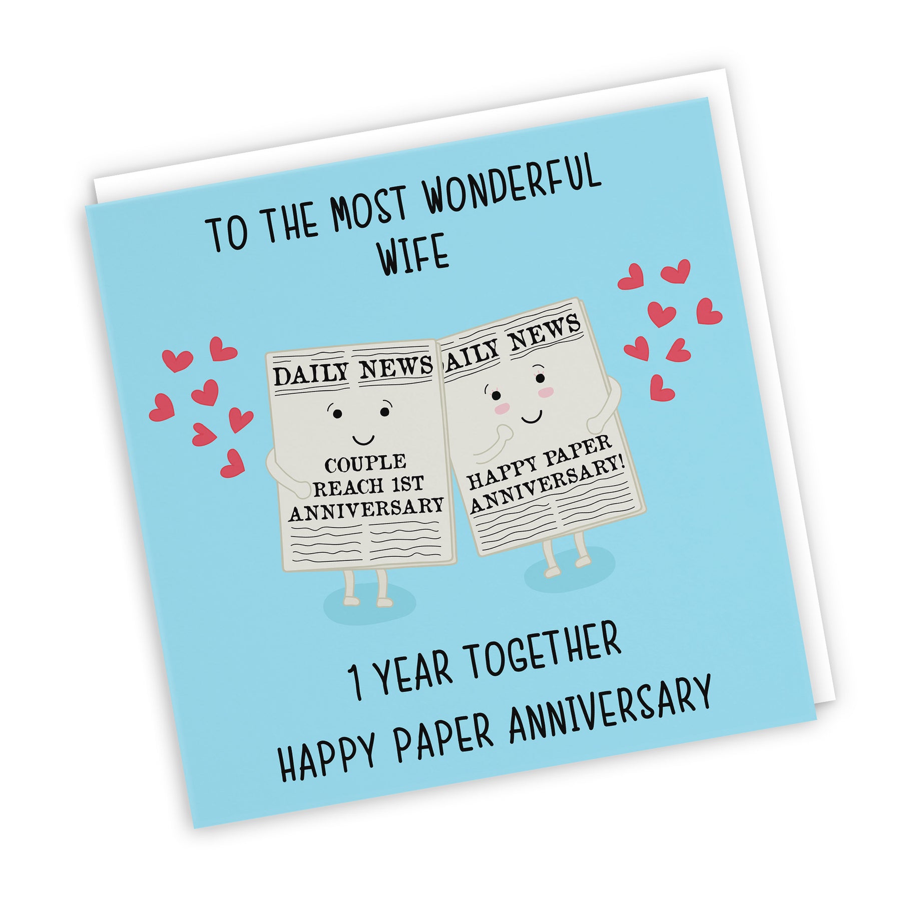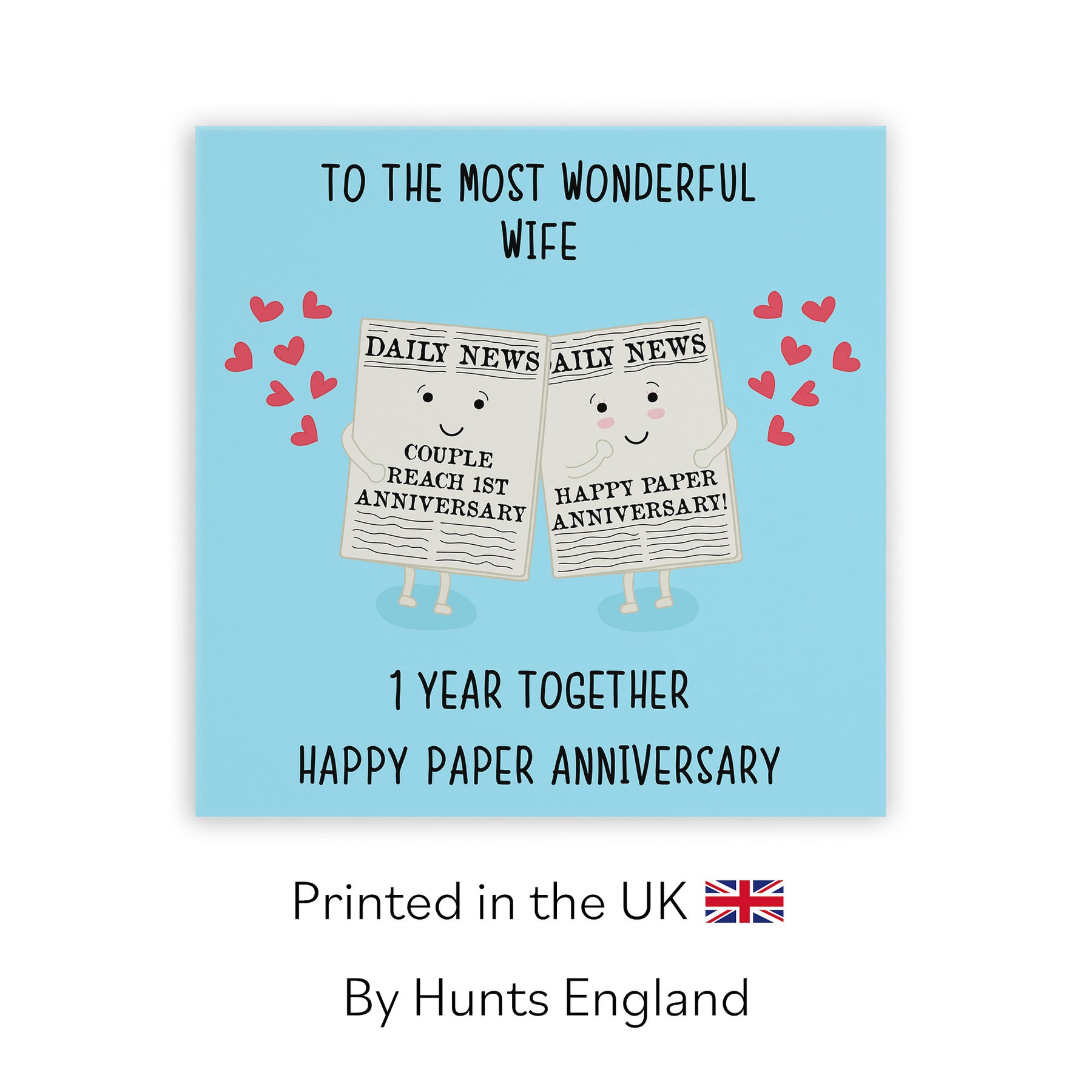 Hunts England - Wife 1st Anniversary Card - To The Most Wonderful Wife - 1 Year Together - Happy Paper Anniversary - Iconic Collection.
