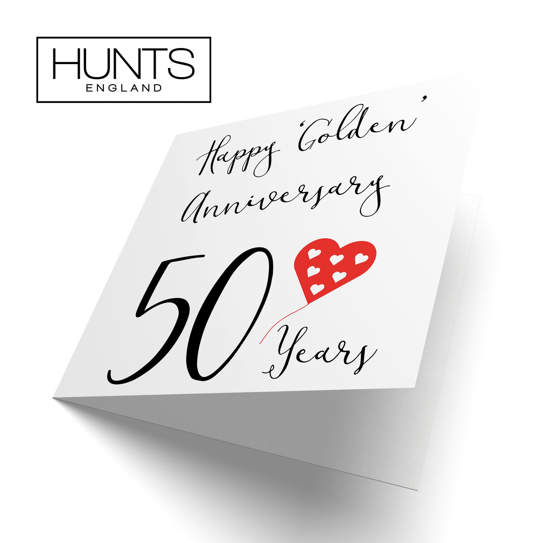 Hunts England - 50th Wedding Anniversary Card - Happy 'Golden' Anniversary - 50 Years - Red Heart Collection.