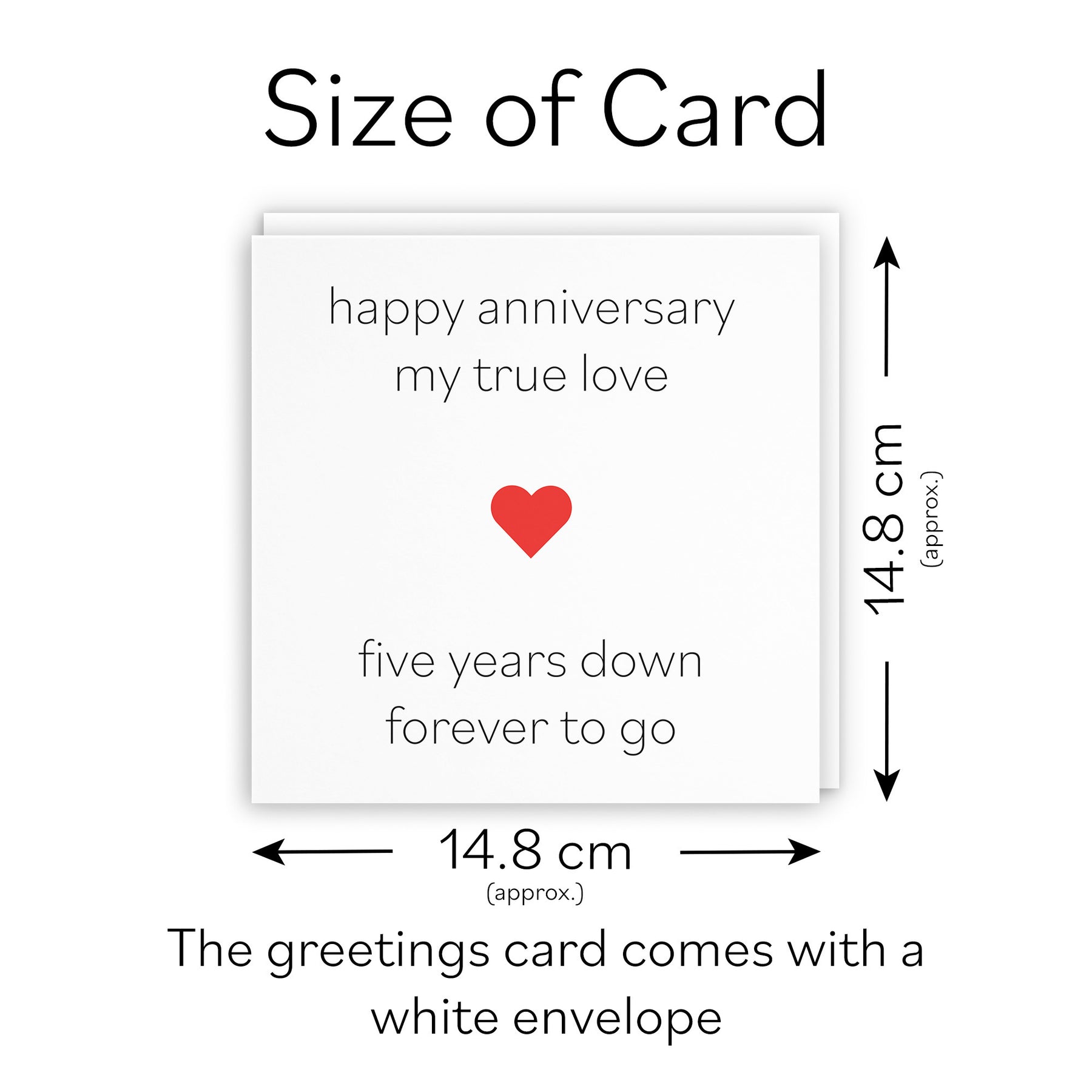Hunts England - Romantic 5th Wedding Anniversary Card - Happy Anniversary My True Love - Five Years Down Forever To Go - Red Heart Collection.