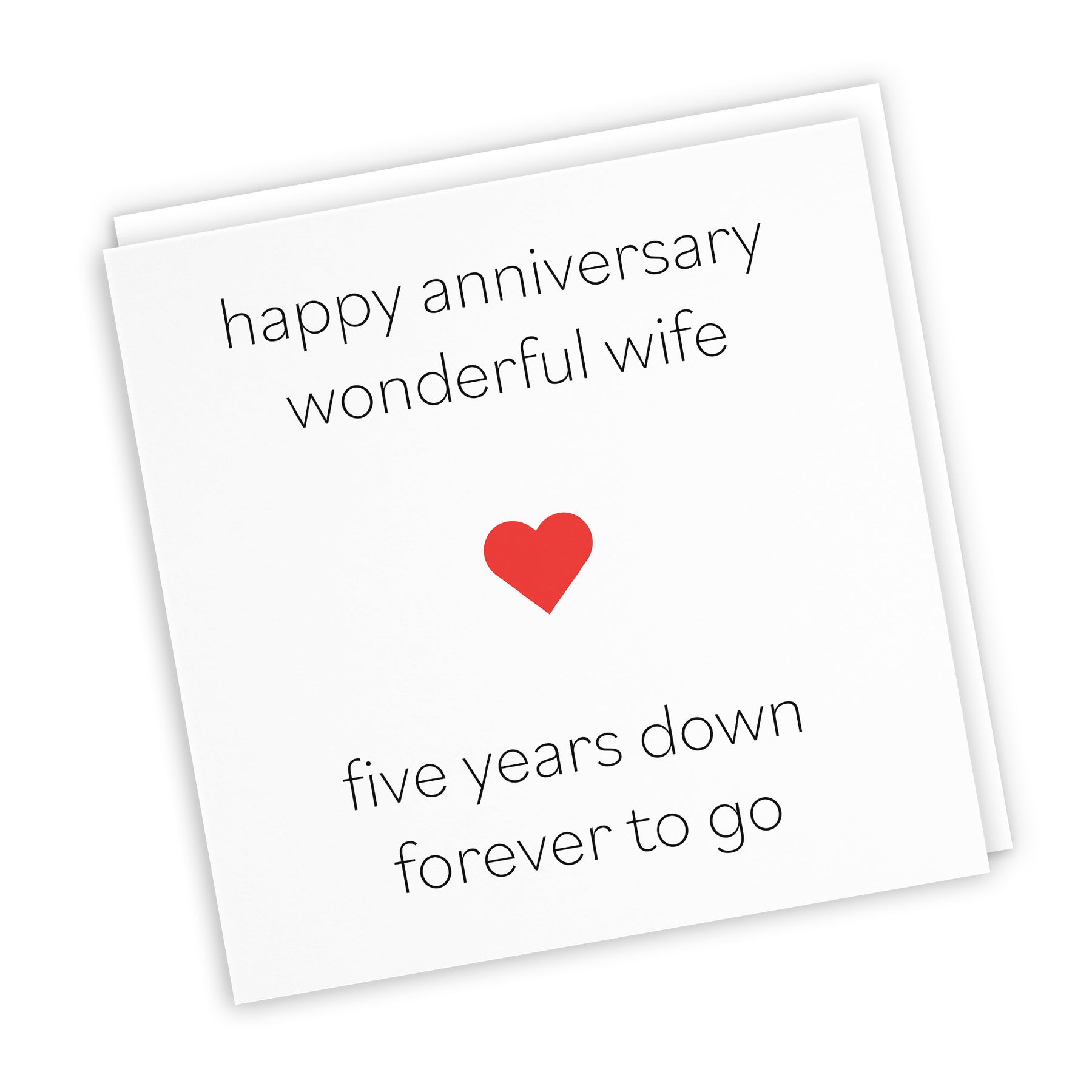 Hunts England - Wife 5th Wedding Anniversary Card - Happy Anniversary Wonderful Wife - Five Years Down Forever To Go - Red Heart Collection.