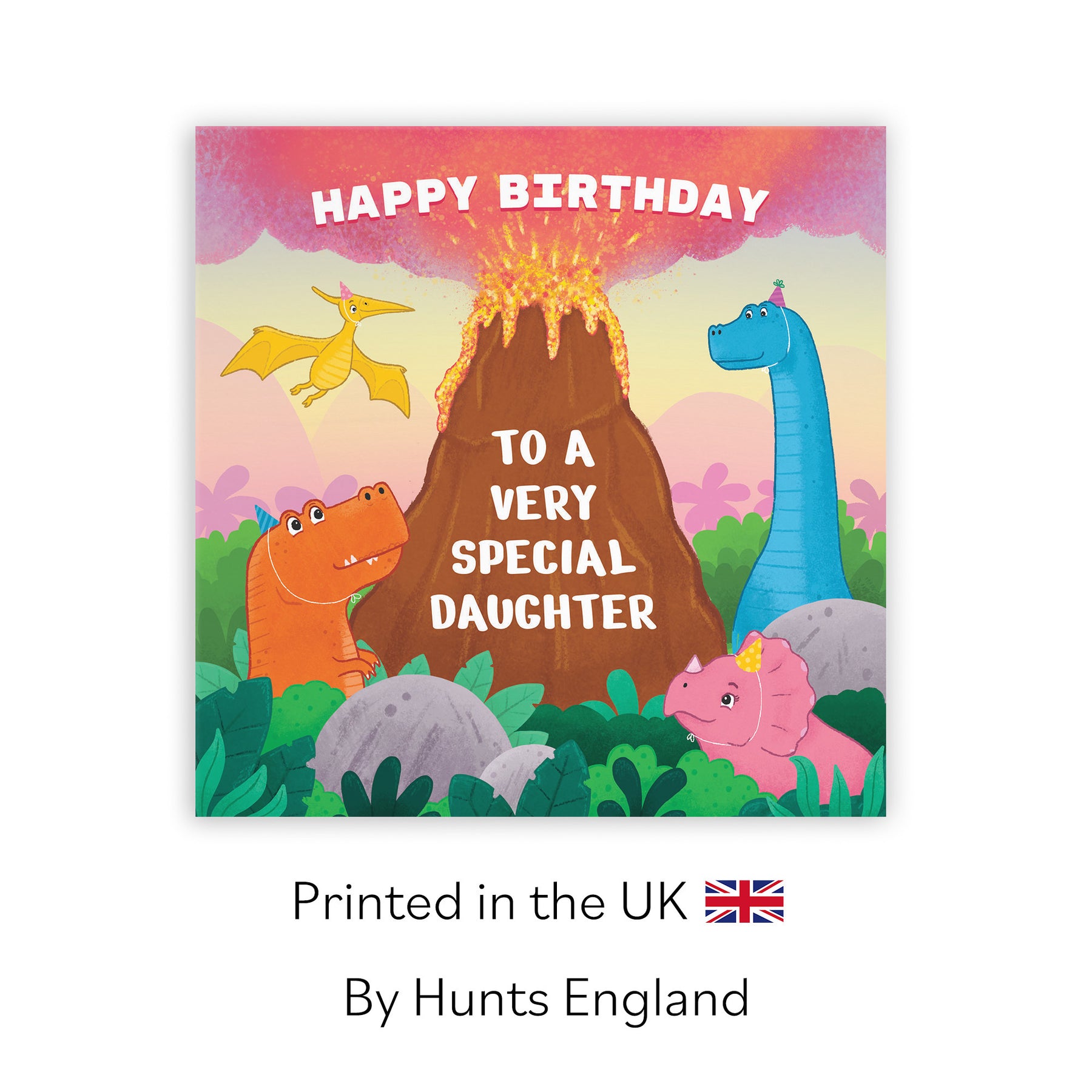 Hunts England - Daughter Dinosaur Children's Birthday Card - Happy Birthday - To A Very Special Daughter - Dinosaurs & Volcano - Imagination Collection.