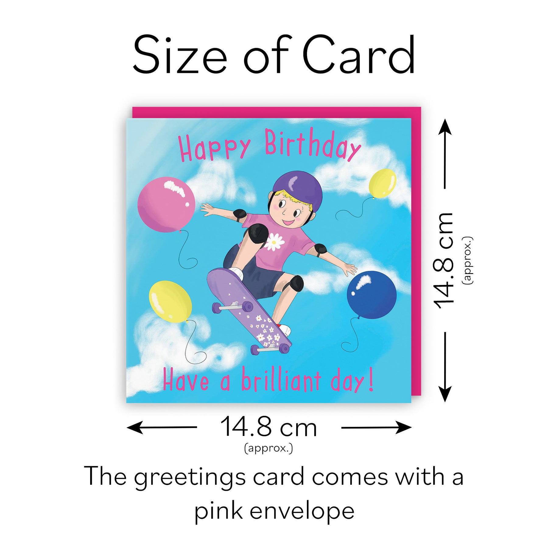 Hunts England - Girls Tricks Skateboard Children's Birthday Card - Happy Birthday - Have A Brilliant Day! - Kids Card - Adventurers Collection.