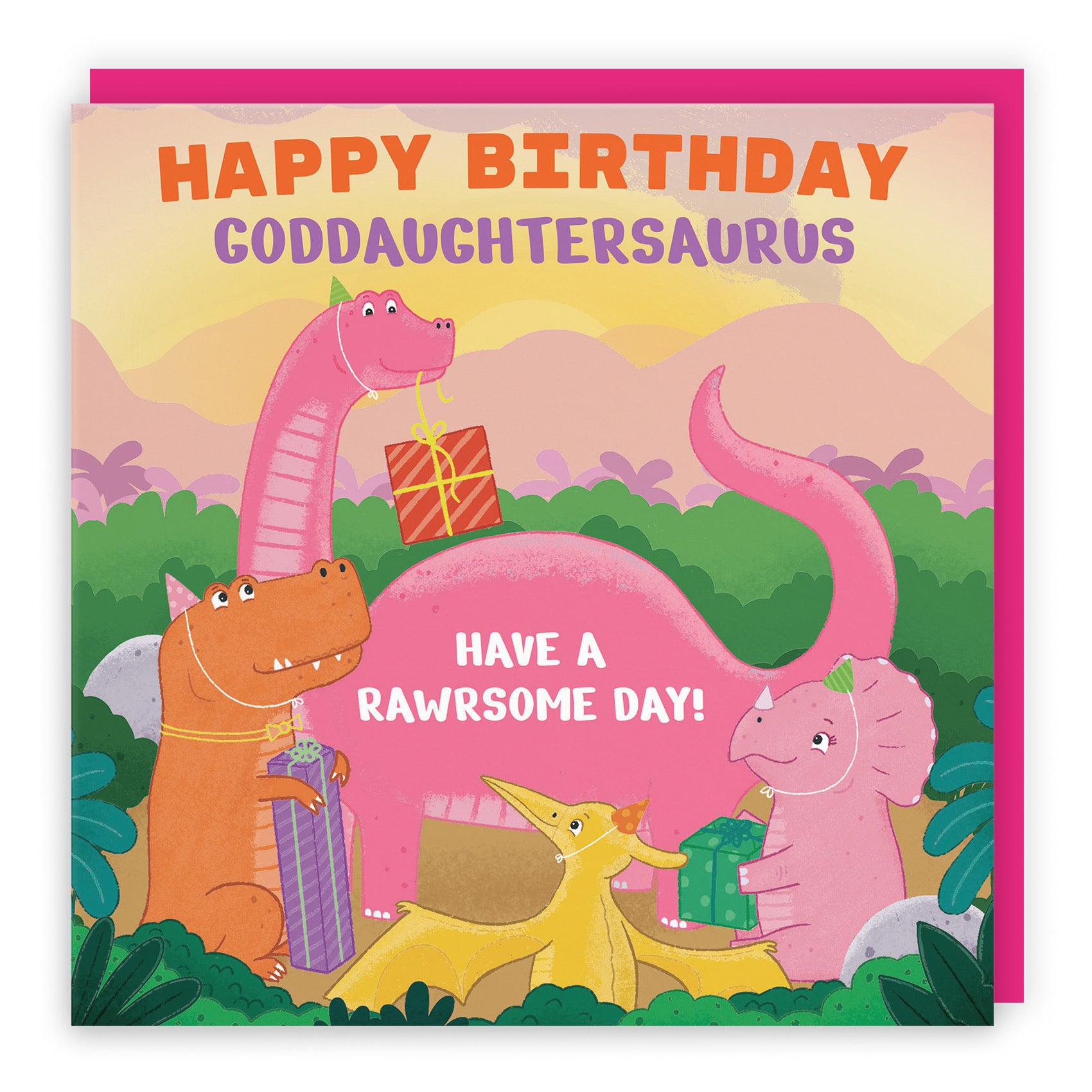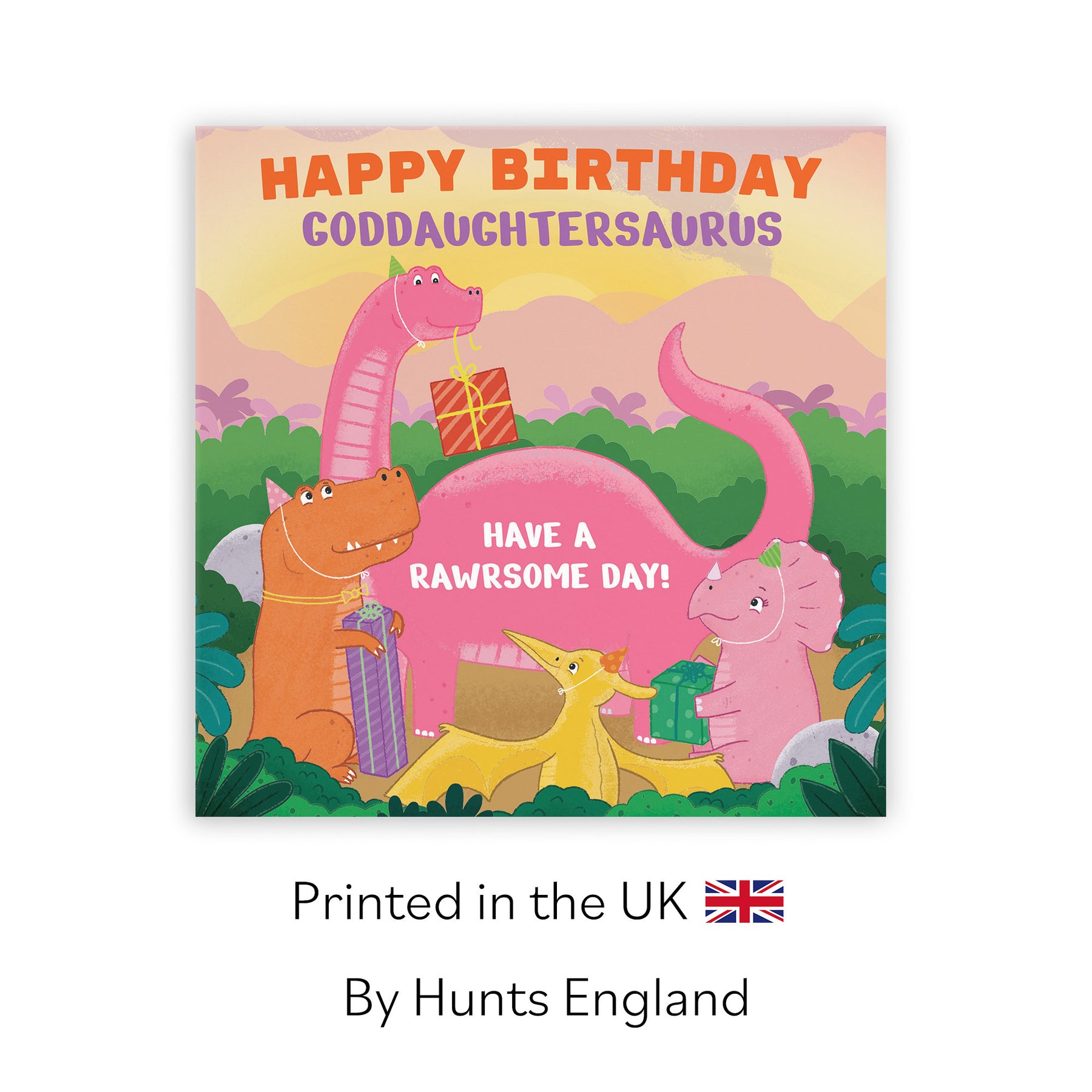 Hunts England - Goddaughter Birthday Dinosaur Party Children's Card - Happy Birthday - Have A Rawrsome Day! - Goddaughtersaurus - Imagination Collection.