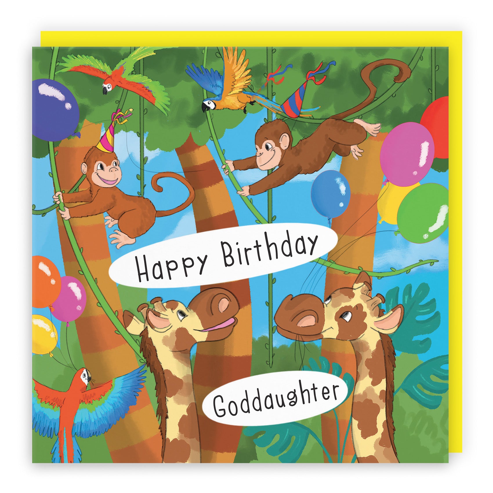 Hunts England - Goddaughter Monkey Birthday Card - Happy Birthday - Goddaughter - Monkeys, Giraffes & Parrots Kids Card - Jungle Collection.
